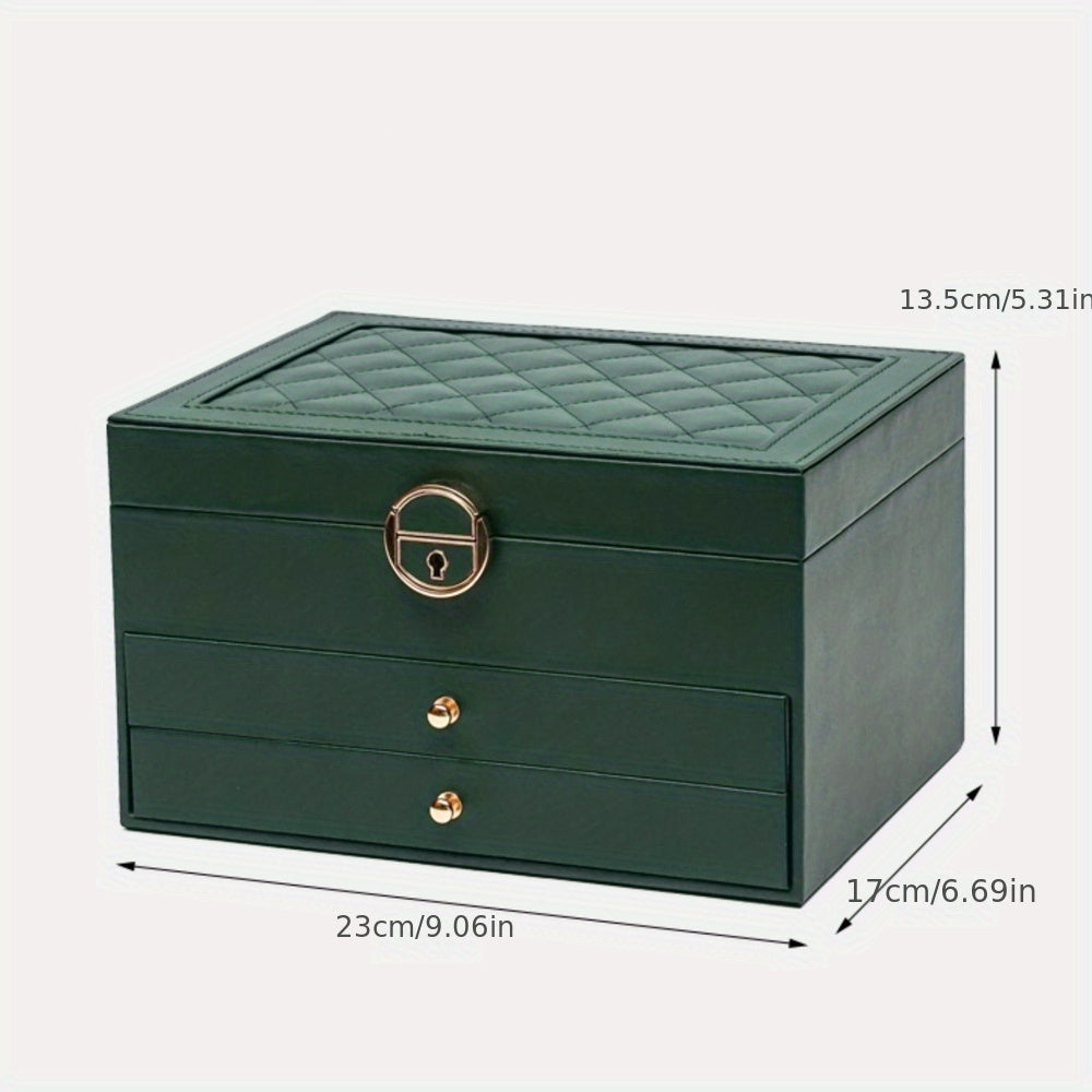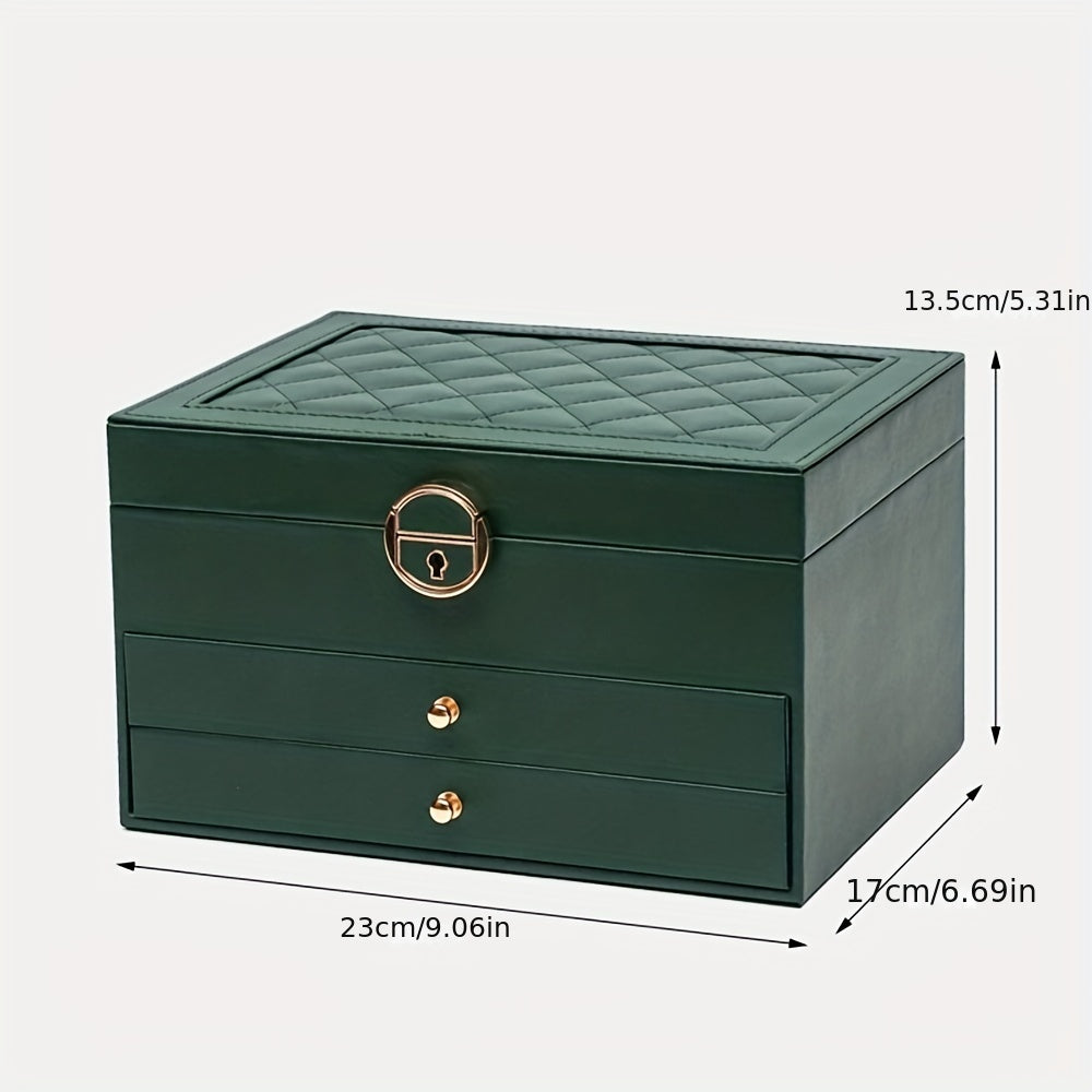 Keep your precious jewelry organized and secure with this high-end storage box. It features a golden leather design with multiple layers for large capacity storage.