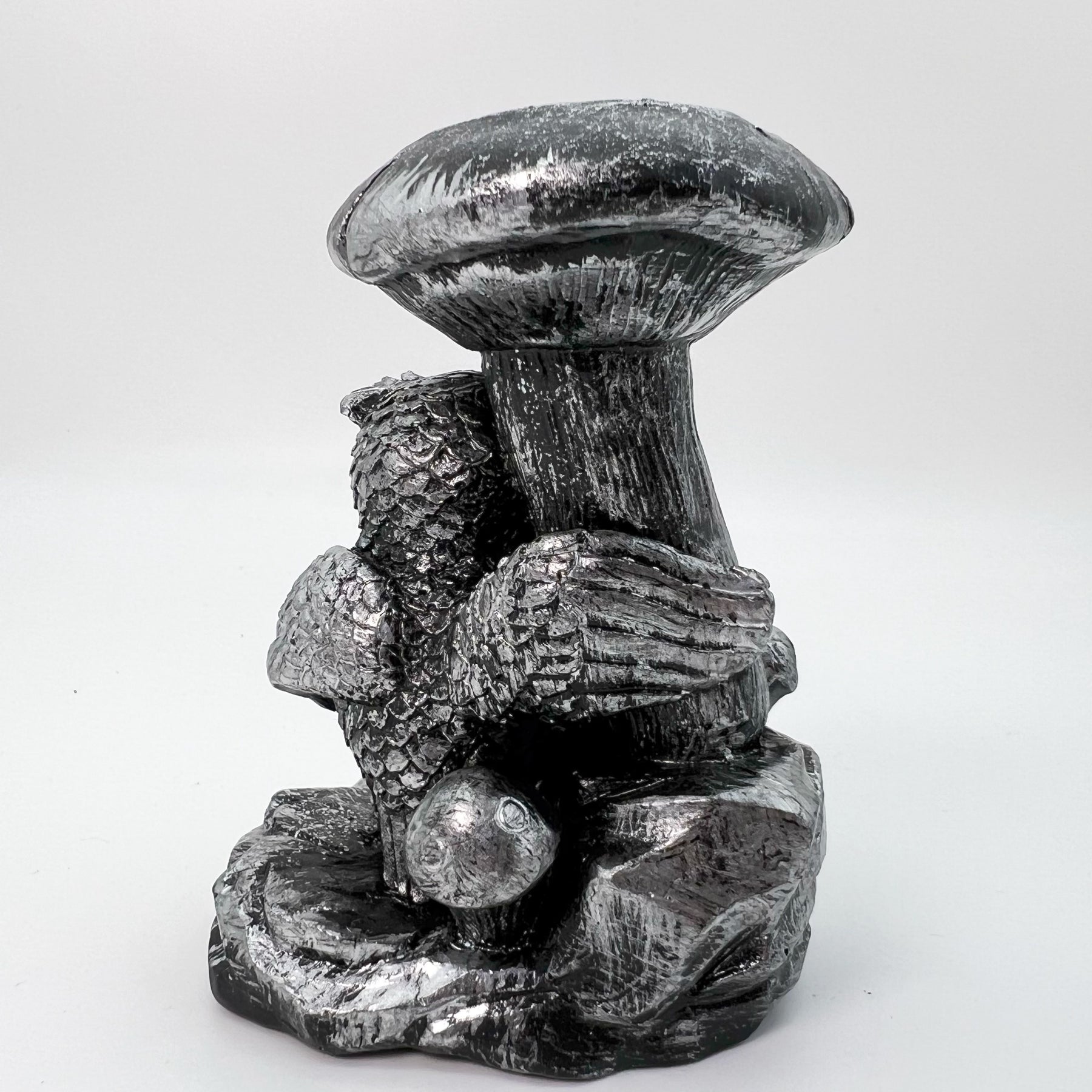 Display your crystal ball with this natural owl mushroom base, perfect for enhancing the mystical vibes.