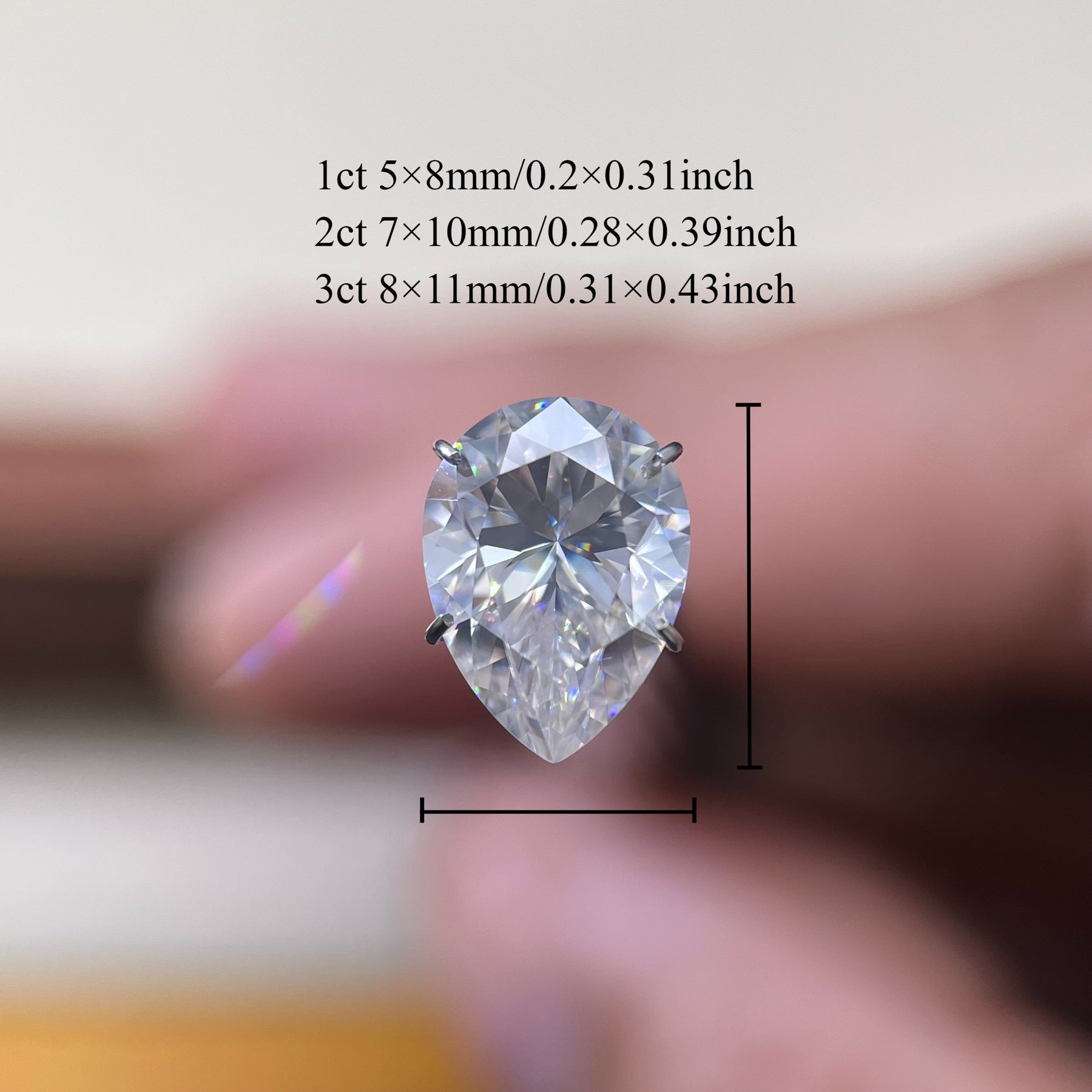 This stunning pear cut moissanite is available in 1ct, 2ct, and 3ct sizes, perfect for crafting your own jewelry pieces. Ideal for wedding rings, engagement rings, pendants, necklaces, and other jewelry making projects.