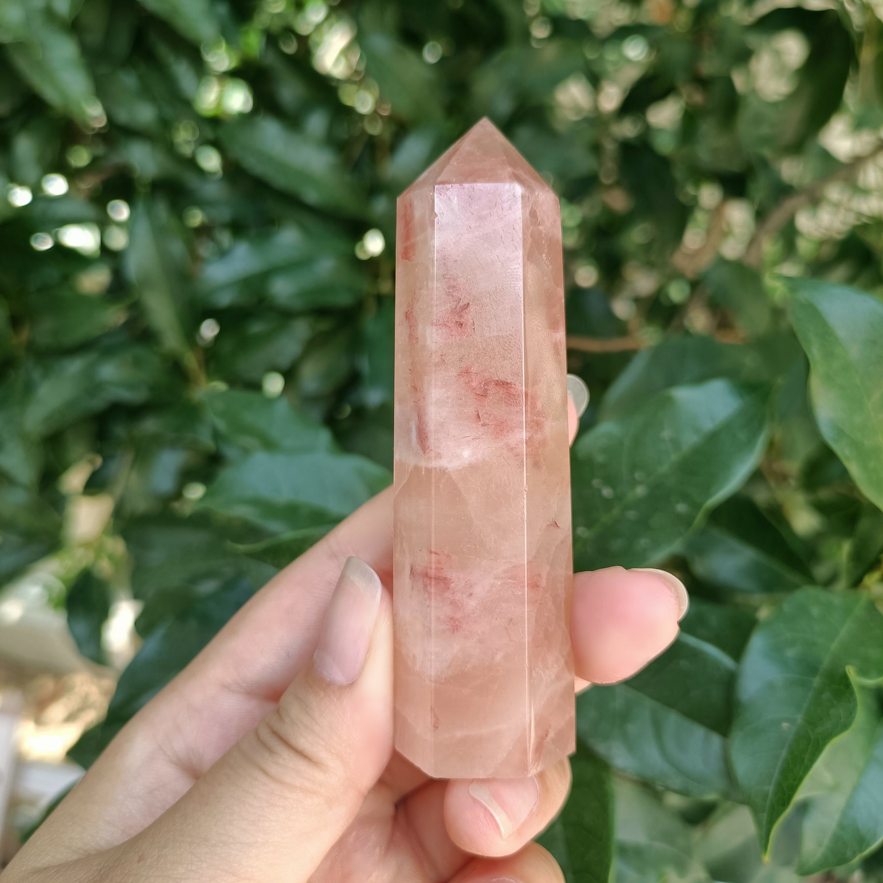 Enhance your spiritual energy with this pink single pointed pillar. Ideal for meditation and energy healing practices. Perfect for creating a serene and harmonious energy scene.