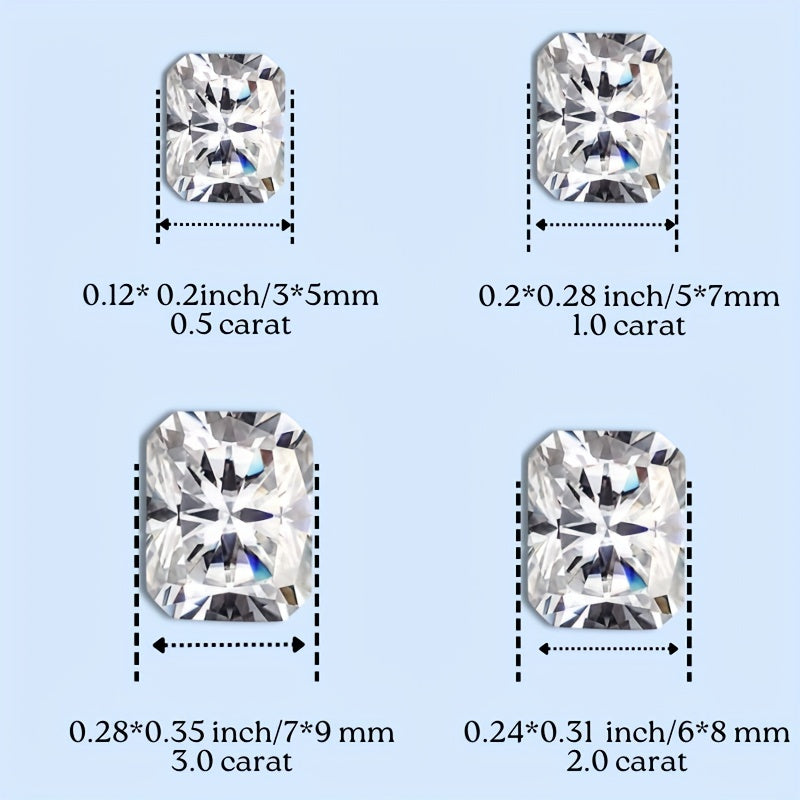 Add brilliance to your jewelry with this 5.0 carat radiant cut loose moissanite. It features D color and VVS1 clarity with excellent cut quality, perfect for creating stunning pendant, stud earrings, or ring.
