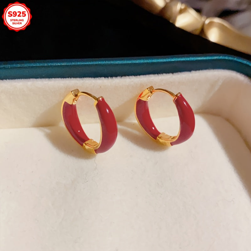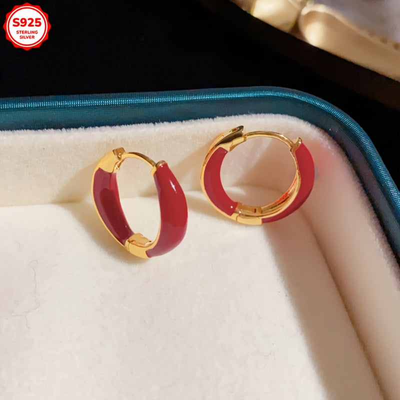 Get ready for spring and summer with these low allergy red circle earrings. The metal style earrings feature a unique drip glaze design that adds a pop of color to any outfit.
