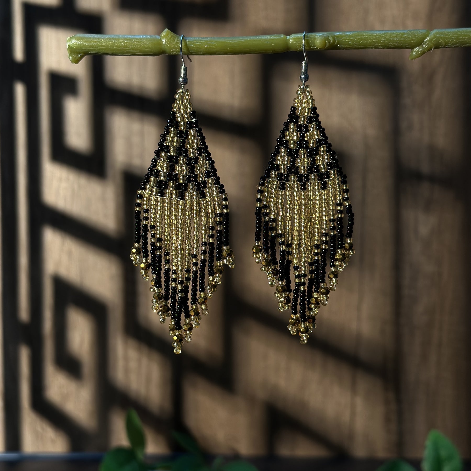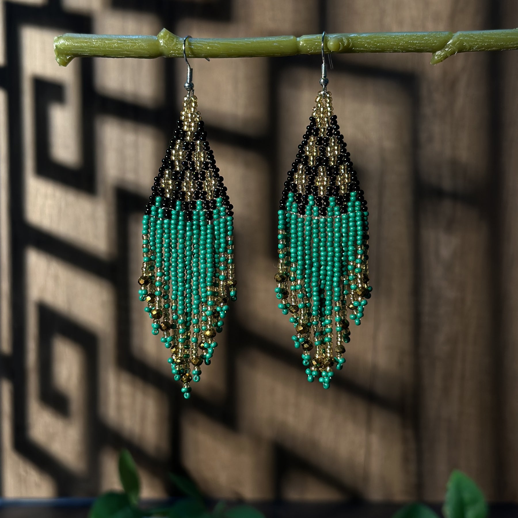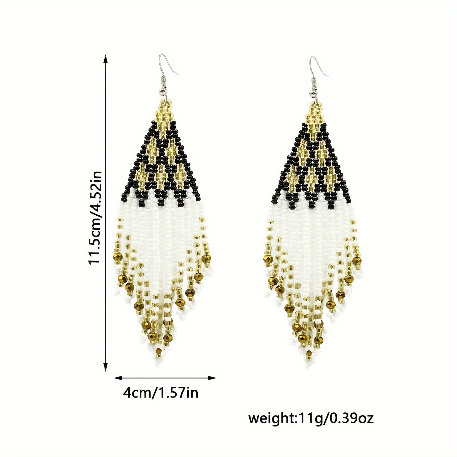Add a touch of bohemian charm to your outfit with these retro rhombus shaped tassel earrings. Perfect for parties, holidays, and banquets.