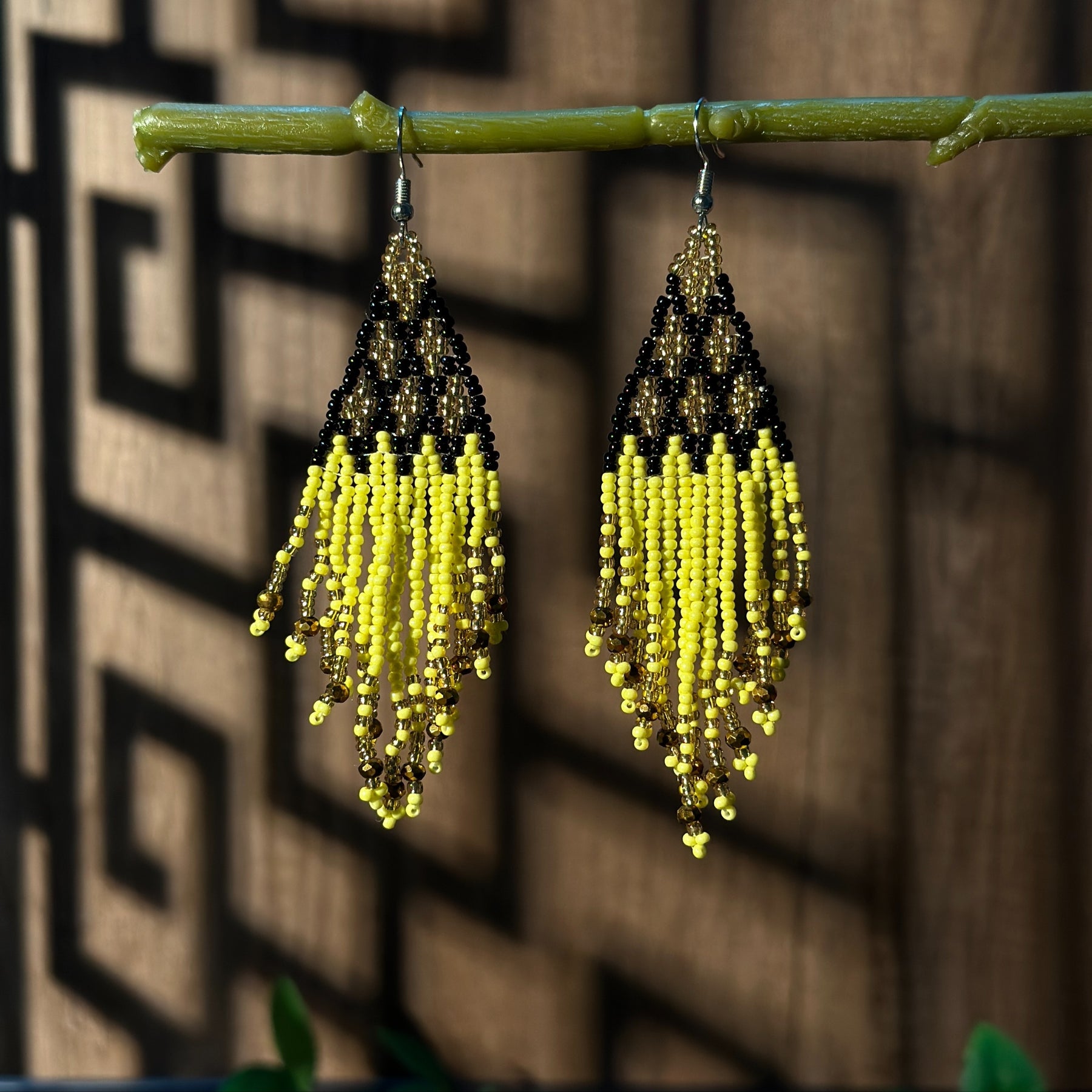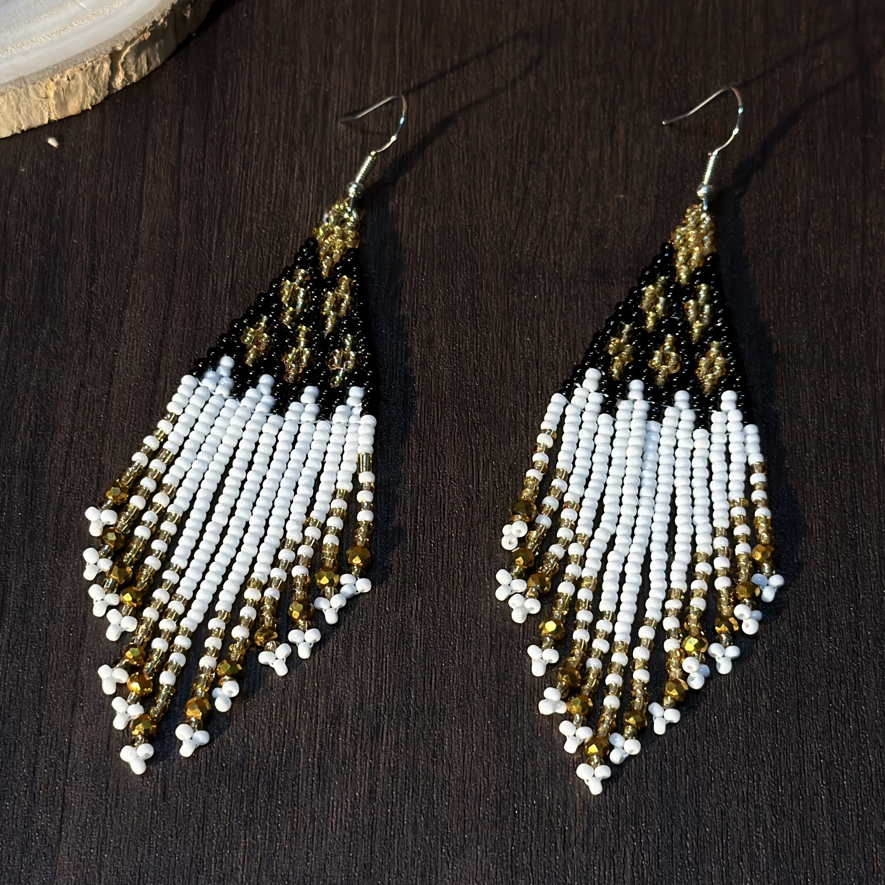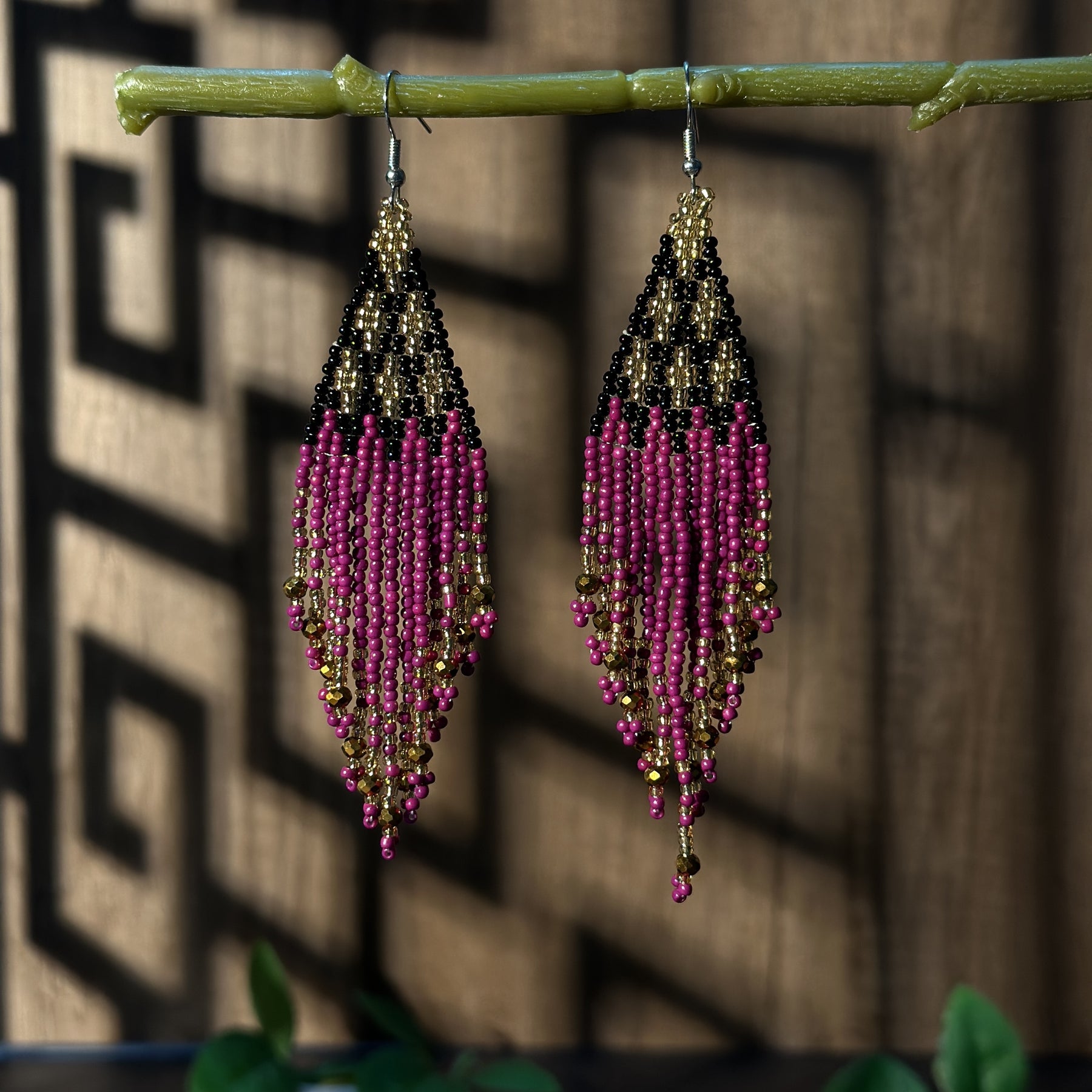 Add a touch of bohemian charm to your outfit with these retro rhombus shaped tassel earrings. Perfect for parties, holidays, and banquets.
