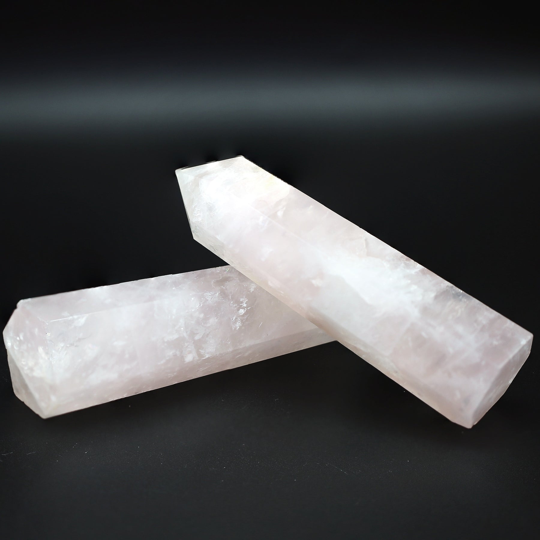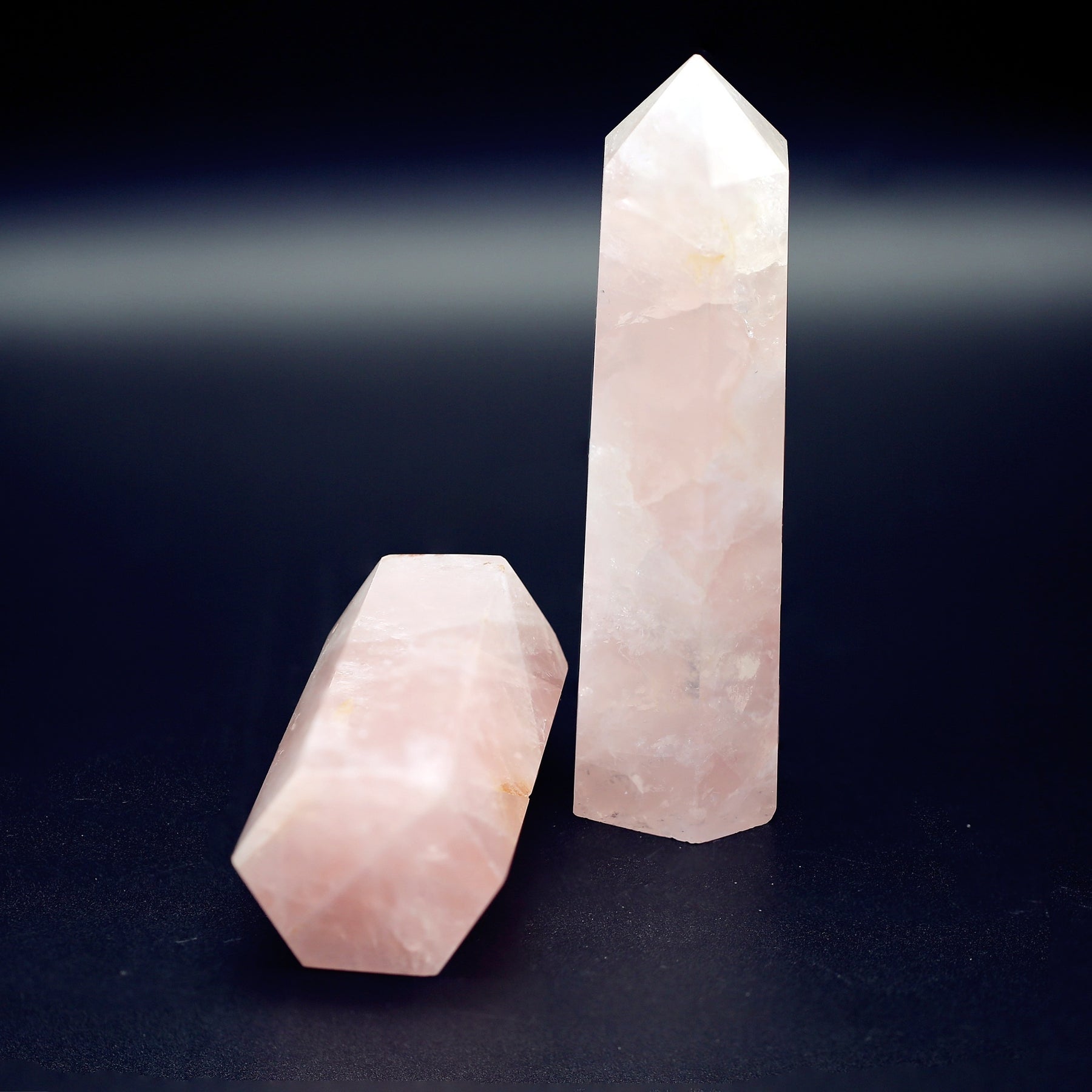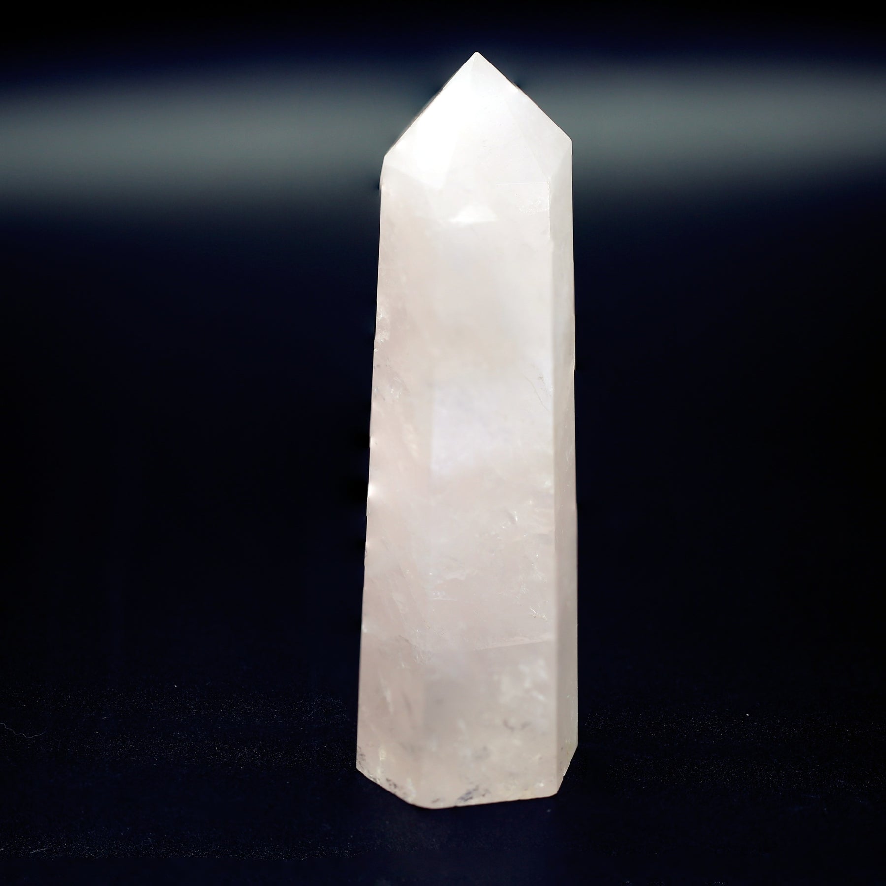 This beautiful Rose Quartz tower is a perfect addition to your crystal collection. It is believed to promote love, harmony, and healing.