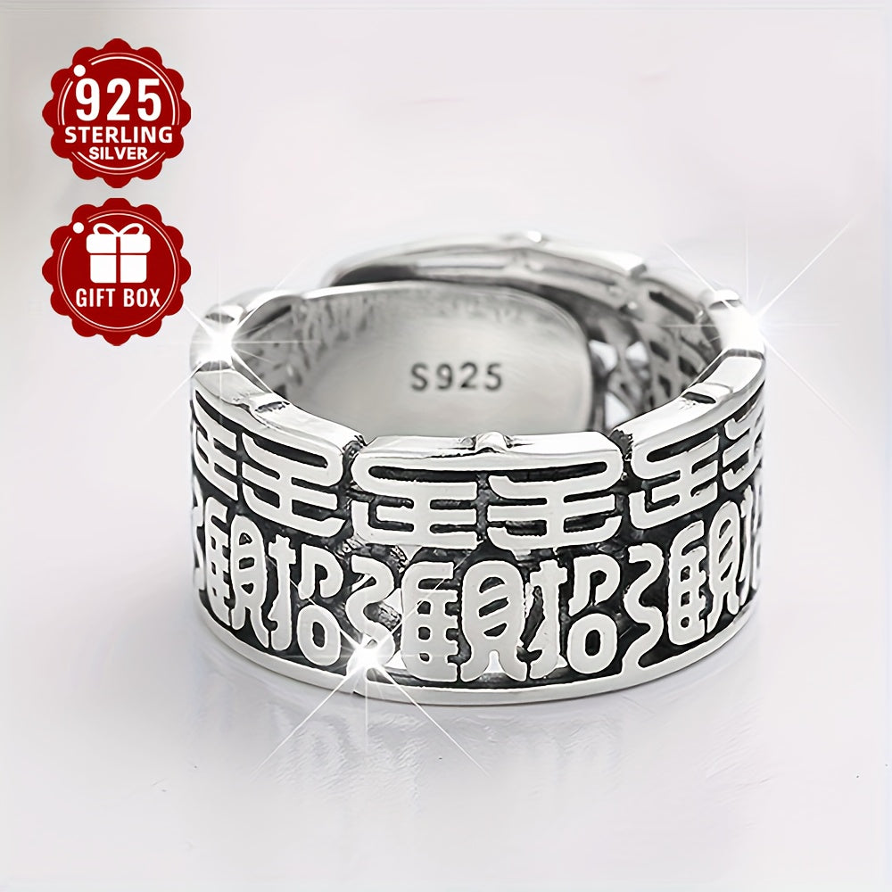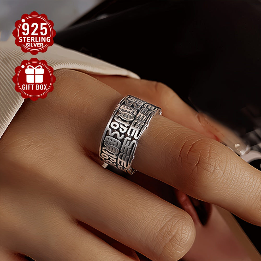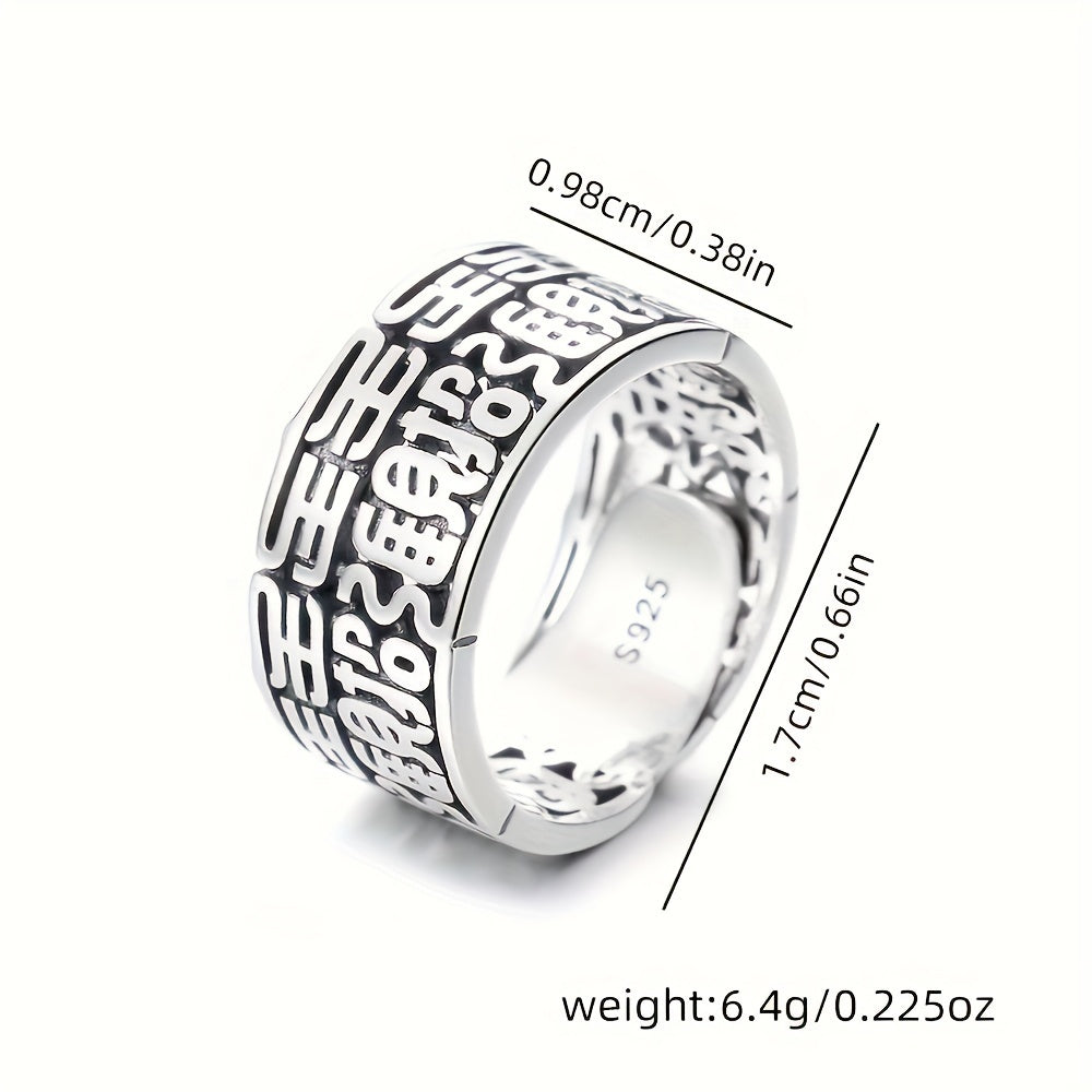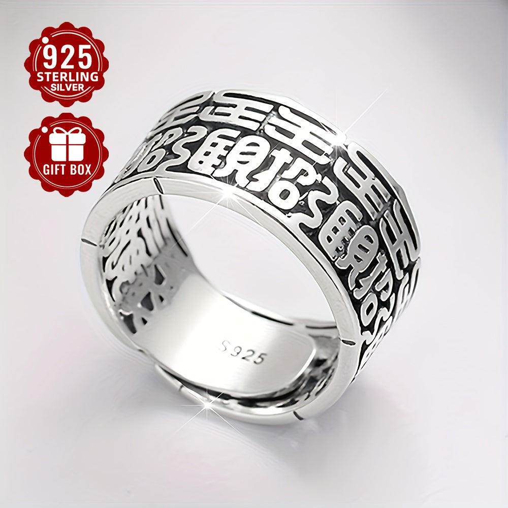 Dieser breite Versionsring besteht aus reinem S925 -Silber und zeigt einen chinesischen Charakter, der Wohlstand und gute Bedeutung anzieht. Es ist sowohl für Männer als auch für Frauen geeignet, den Zeigefinger zu tragen.