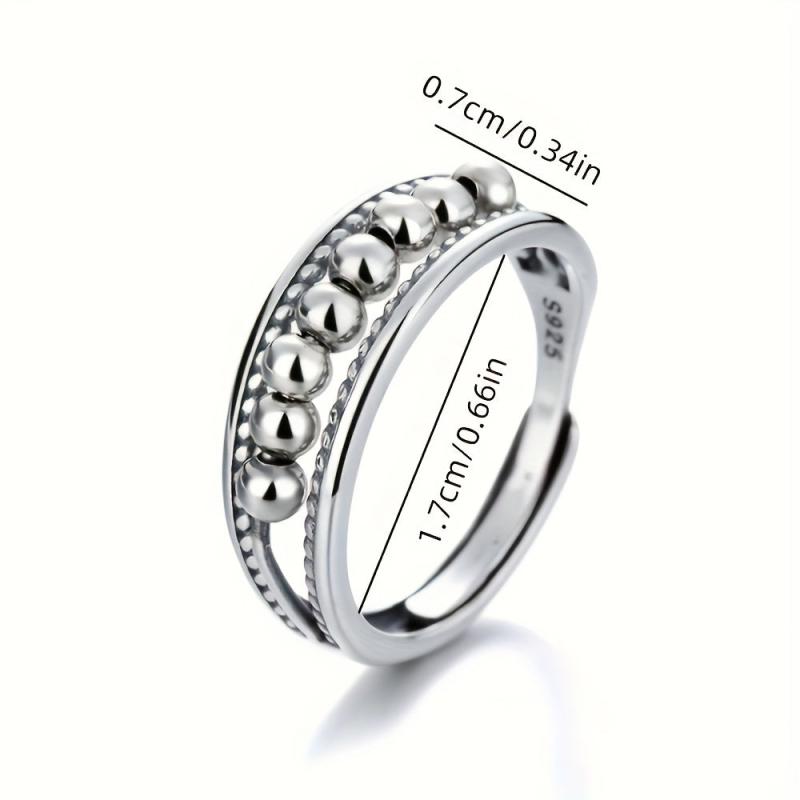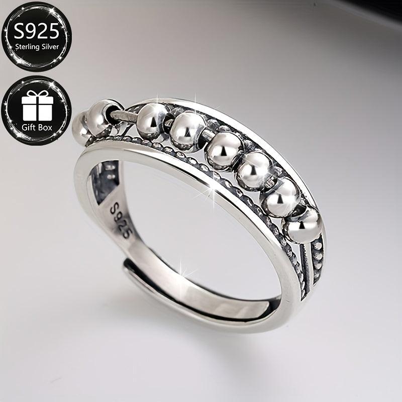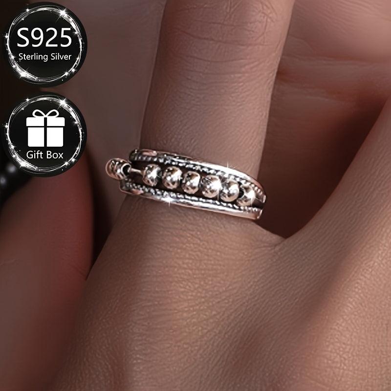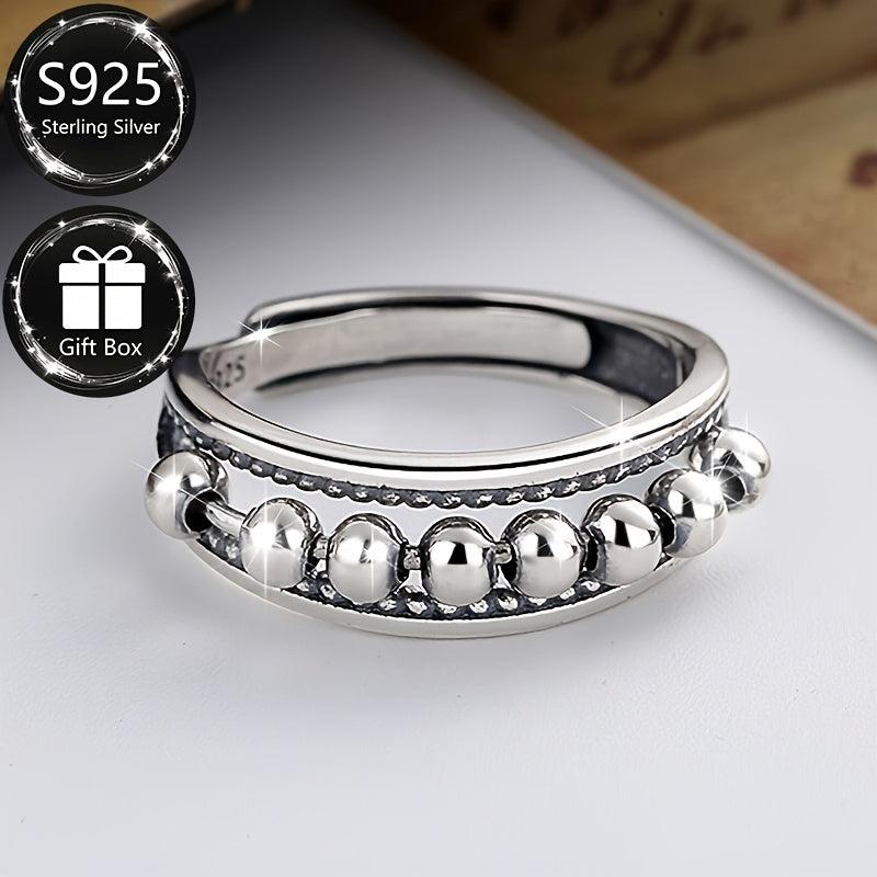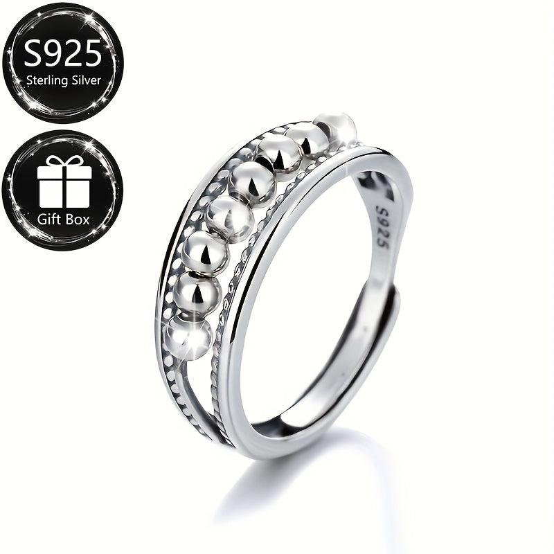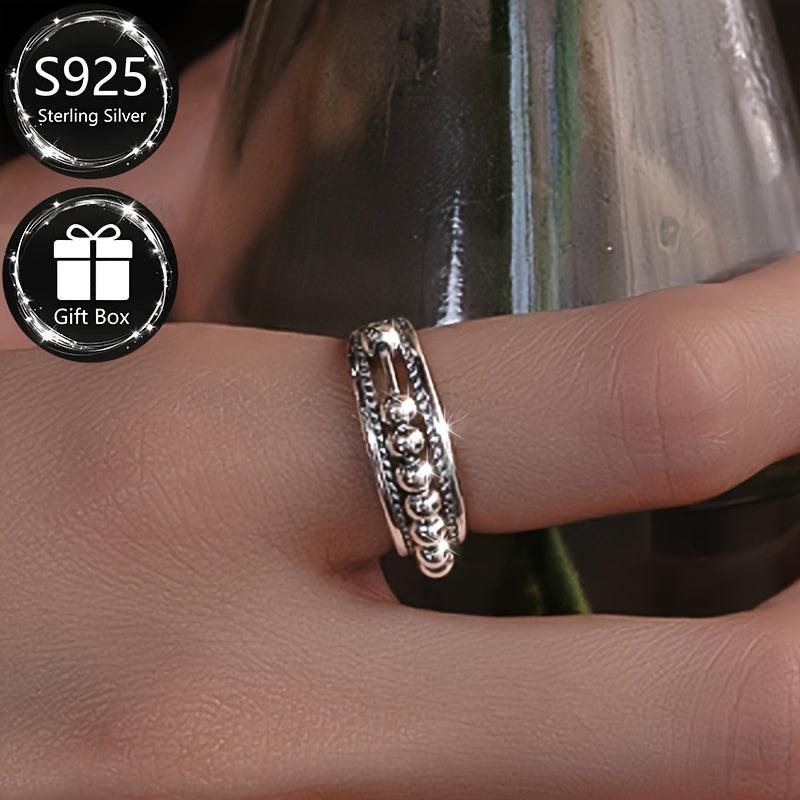 This stylish S925 sterling silver ring features a creative geometric design with chain and bead details. Perfect for daily wear, travel, and adding a touch of elegance to any outfit.