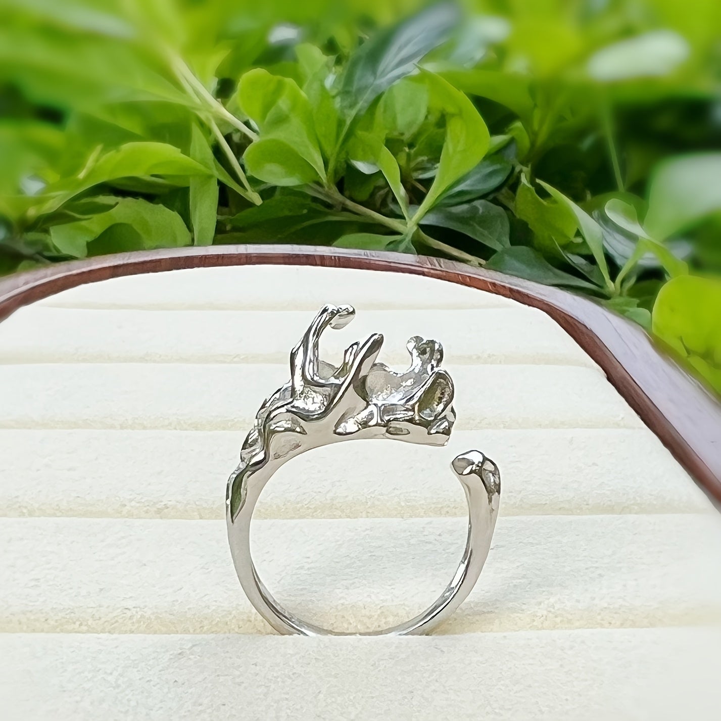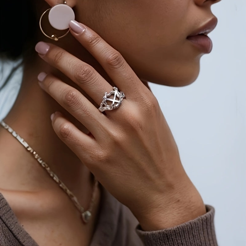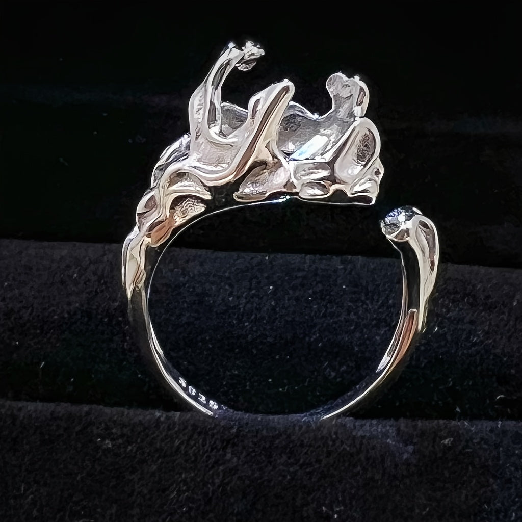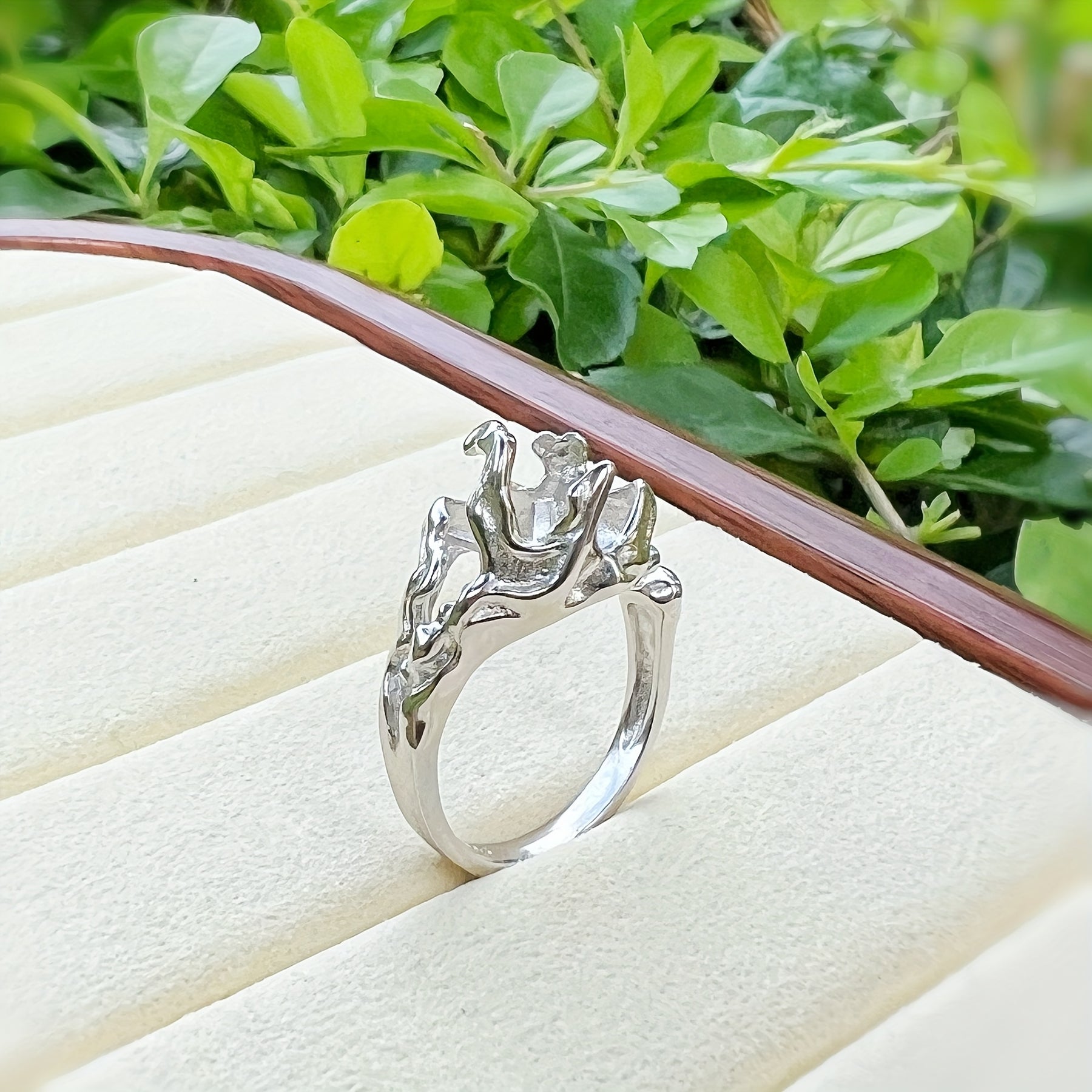 This S925 sterling silver prong ring is perfect for creating your own custom jewelry. The open size ring features an irregular shape and can accommodate a 7.5x7.5mm stone.