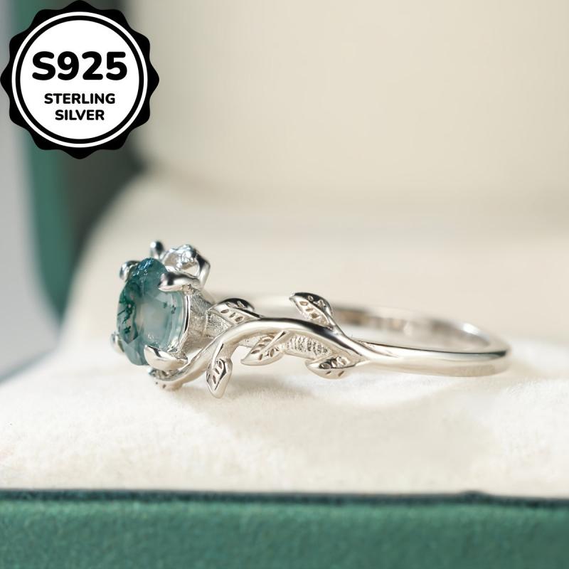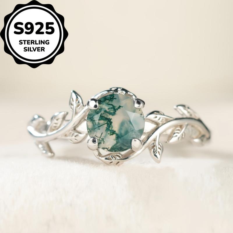 This beautiful ring features a natural water grass agate stone set in a retro round design with a leaf edge. Perfect for daily wear or as a gift.