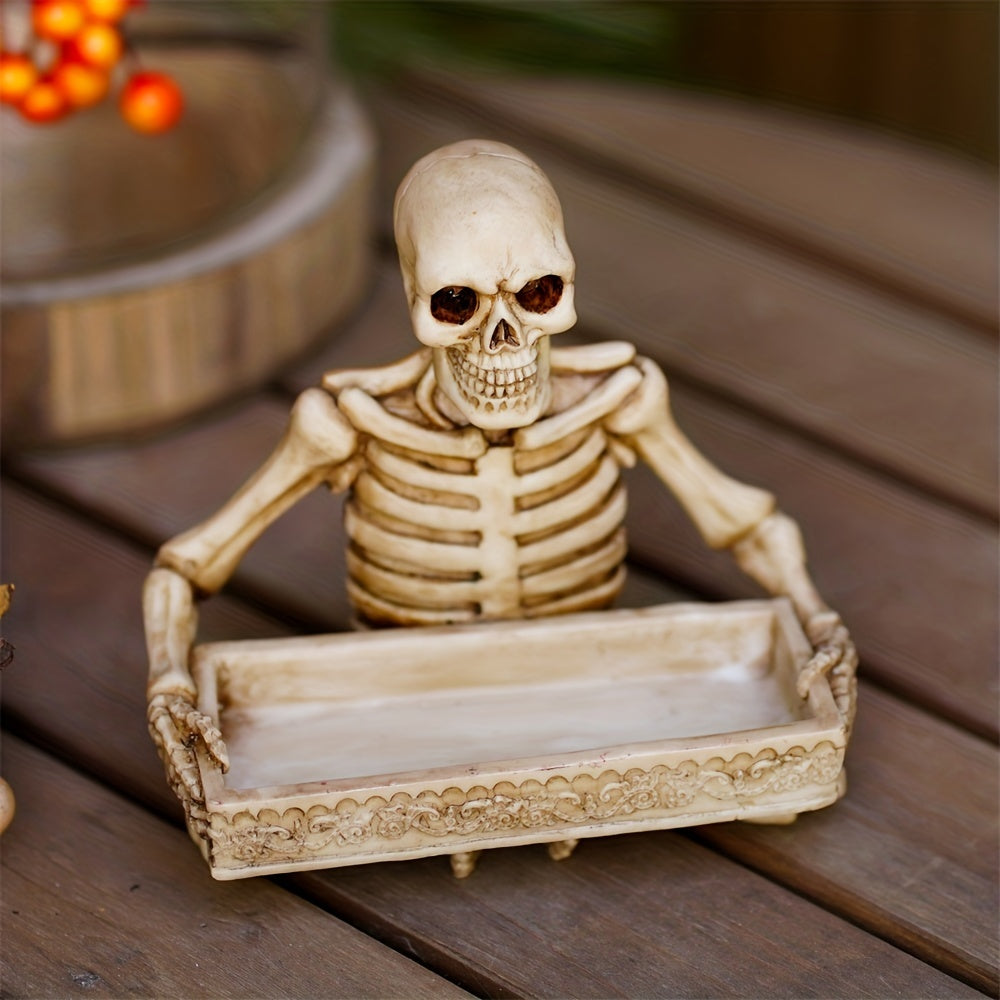 Add a touch of mystery to your storage with this skull-shaped tray featuring a slot for easy organization.
