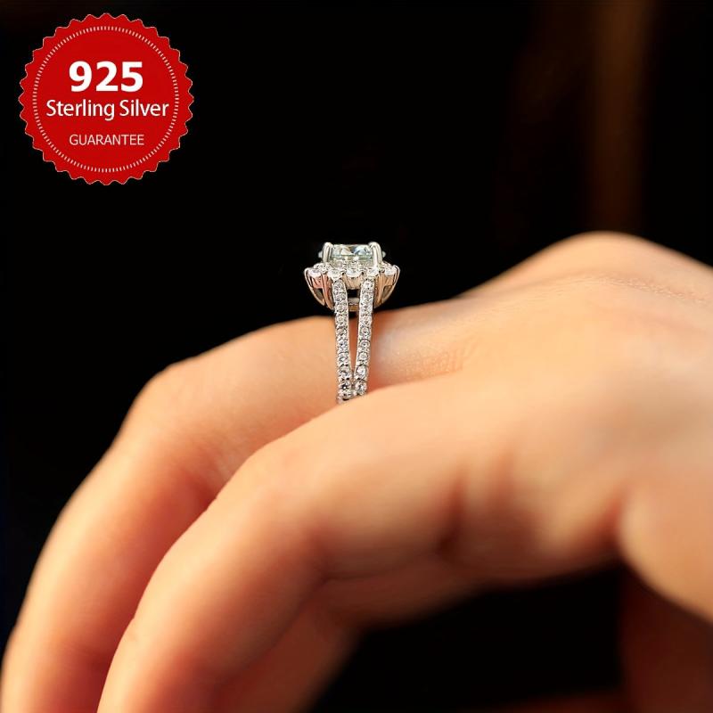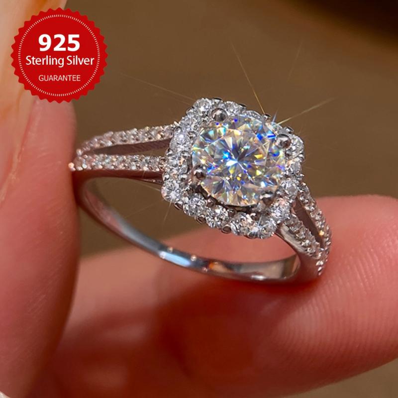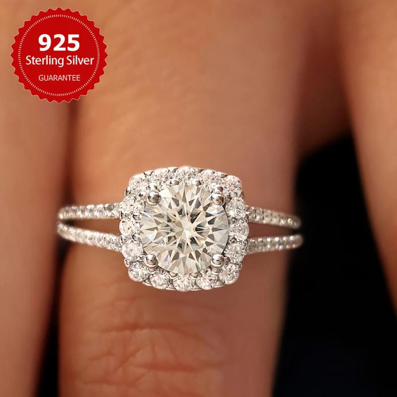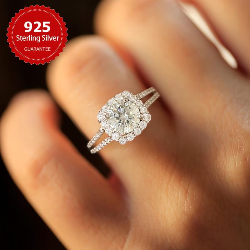 This stunning ring features a 1CT Moissanite stone set in 925 Sterling Silver, making it a gorgeous choice for an engagement or wedding band. It is a promise ring that exudes elegance and sophistication, perfect for any special occasion.