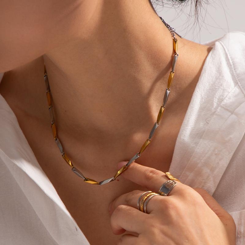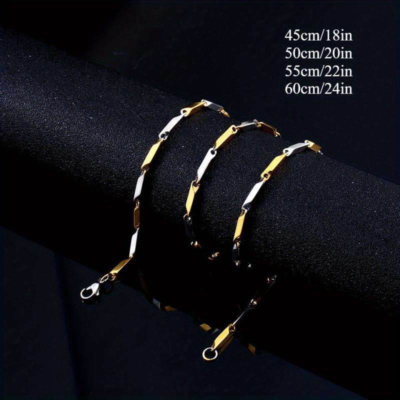 This stainless steel necklace features a rhombus square bead pendant, making it a stylish accessory for men or women. The chain is 3mm wide and has a modern design.