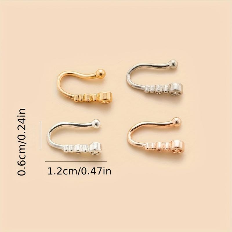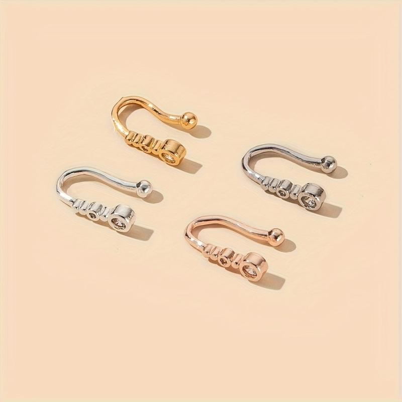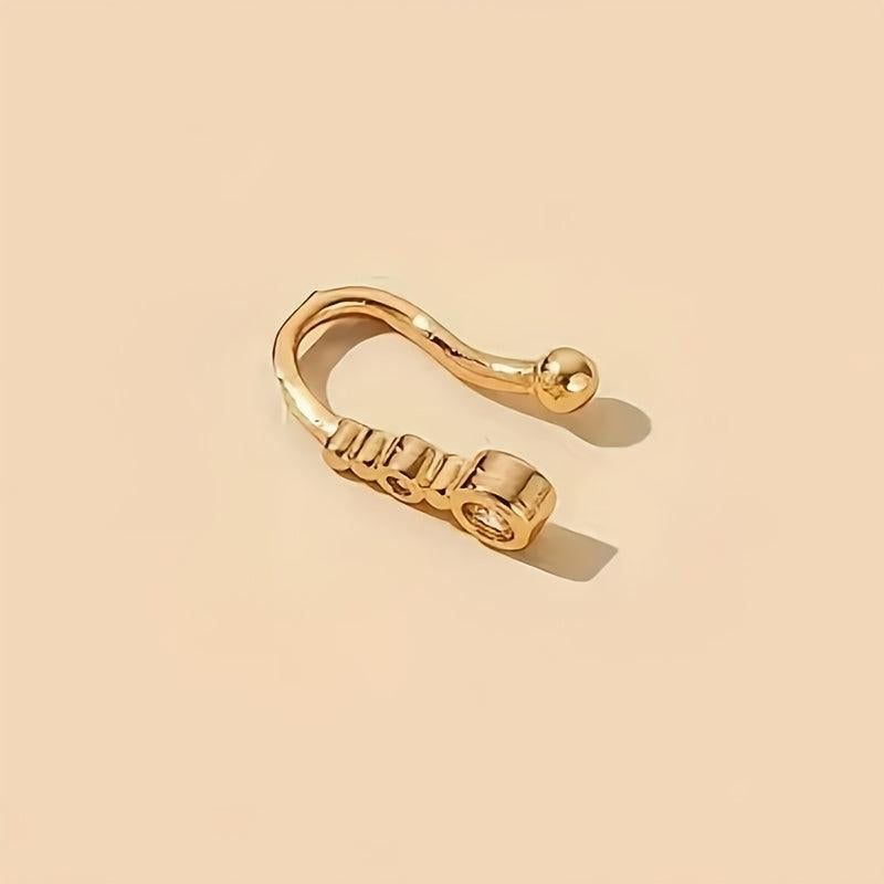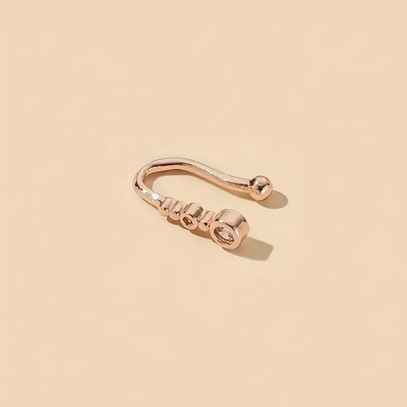 This minimalist nose clip features a stylish copper inlaid design with zirconia accents. Perfect for women who want a chic and comfortable accessory. Great as a birthday gift or everyday wear.