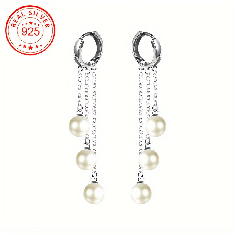 Elegant pair of drop earrings made of S925 silver with tassel lines and multiple shell pearl inlays. Ideal gift for women.