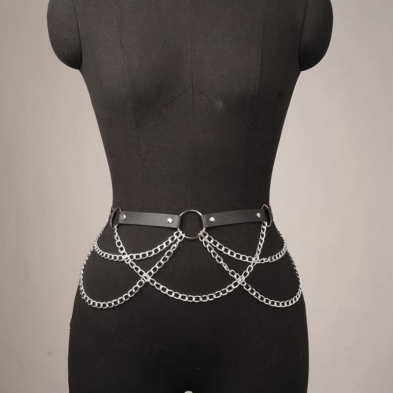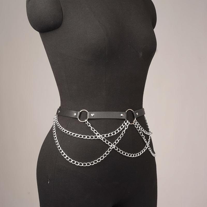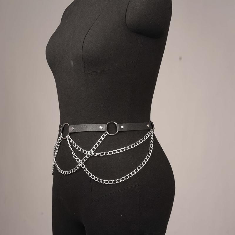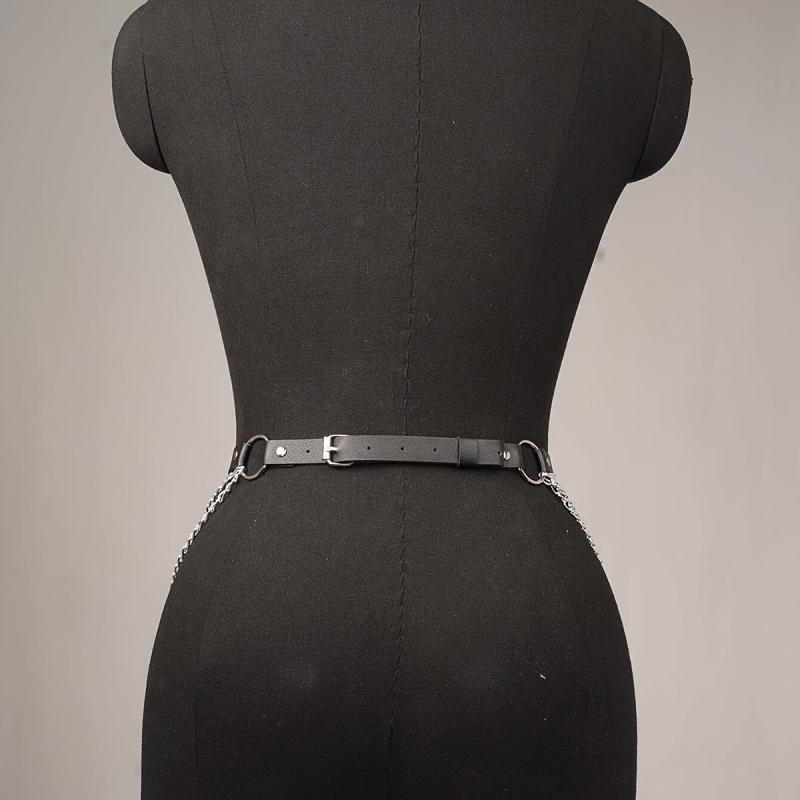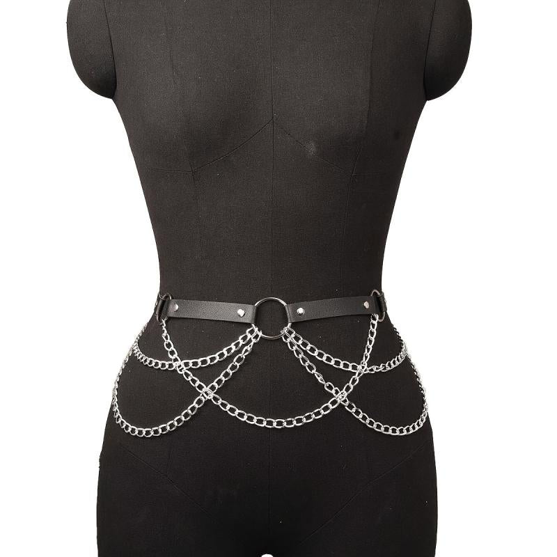 Dieser stilvolle Taillen-Cincher besteht aus Kunstleder mit Kettenriemen, perfekt für einen von Punk inspirierten Look.