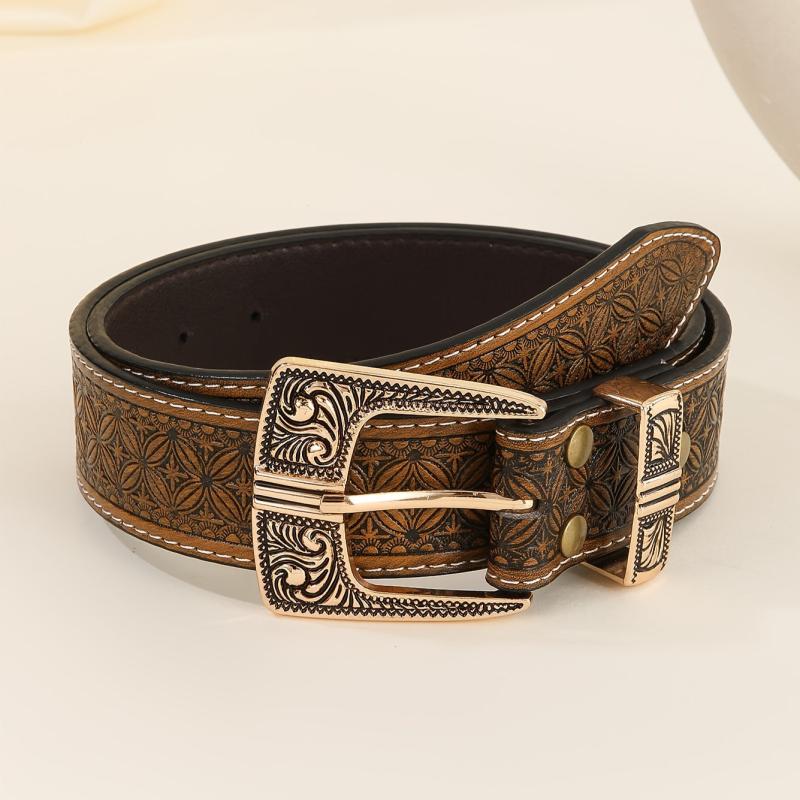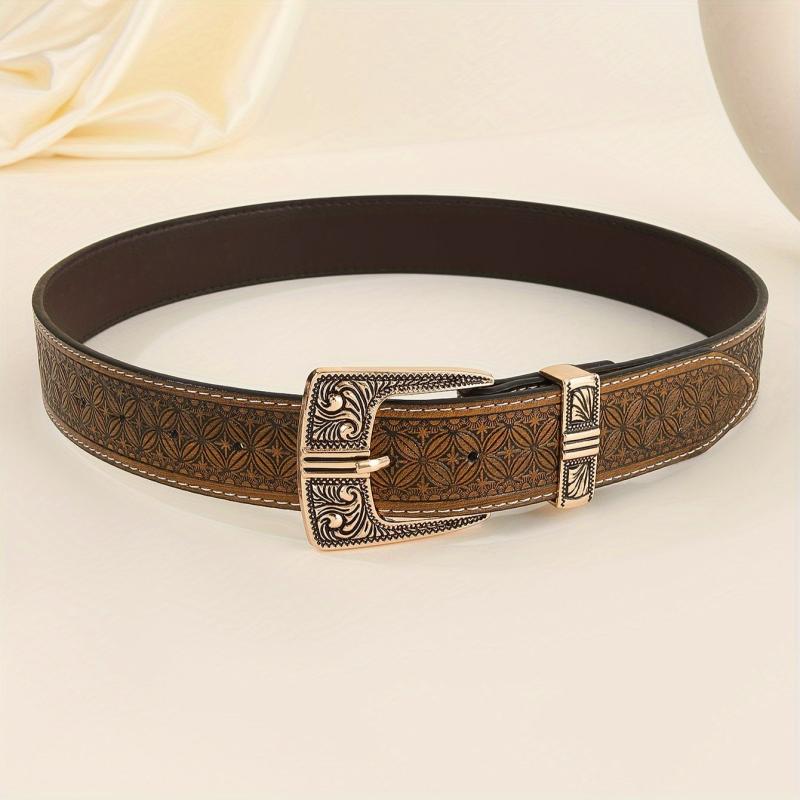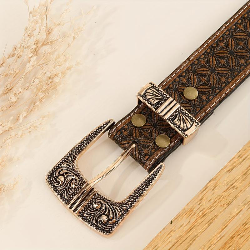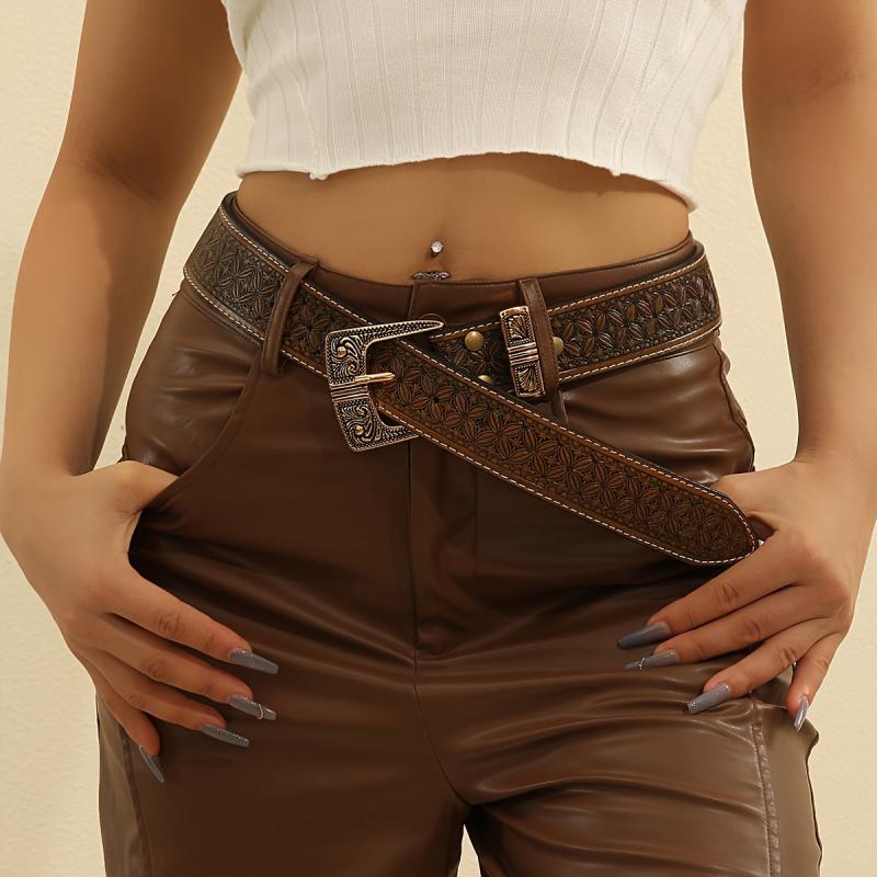Elevate your outfit with this vintage floral carved buckle belt made from faux leather. Perfect for beach outings, evening dates, festivals, parties, and more casual or formal events.