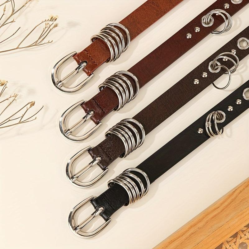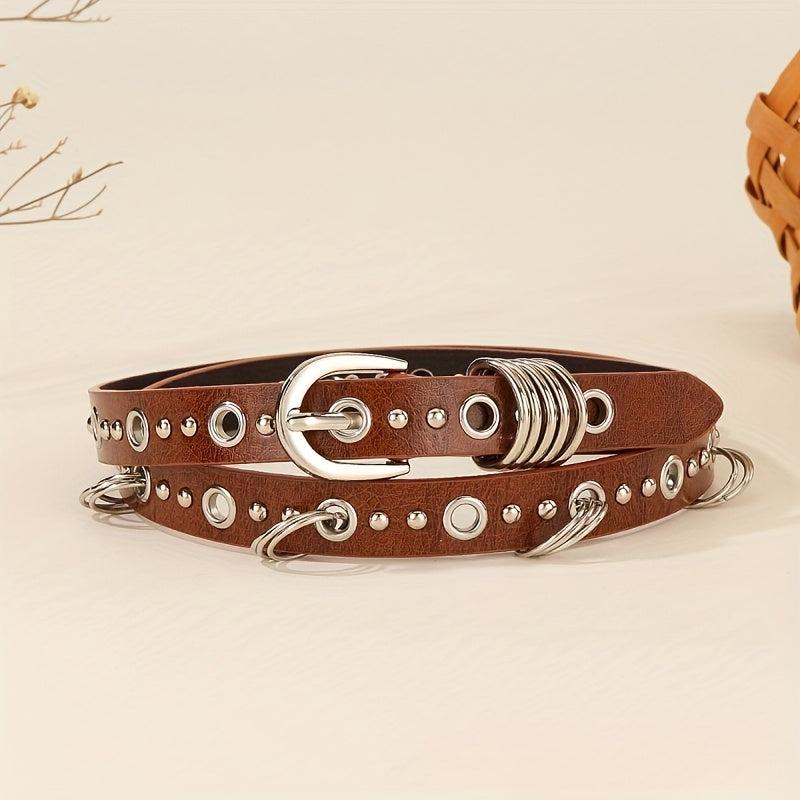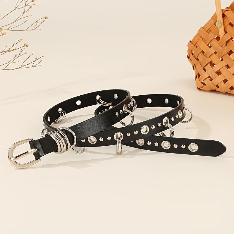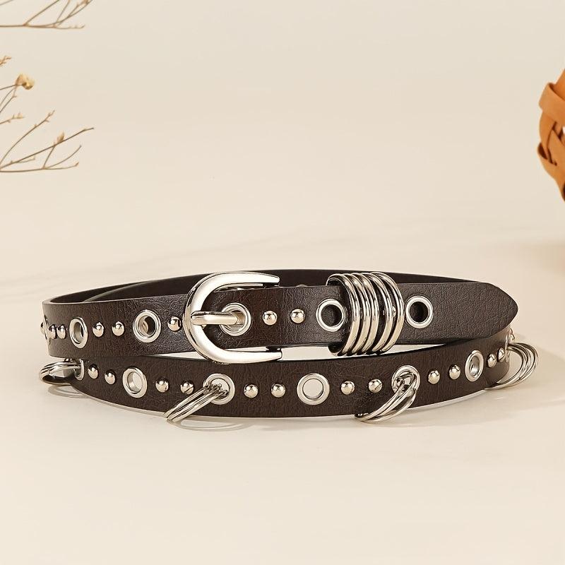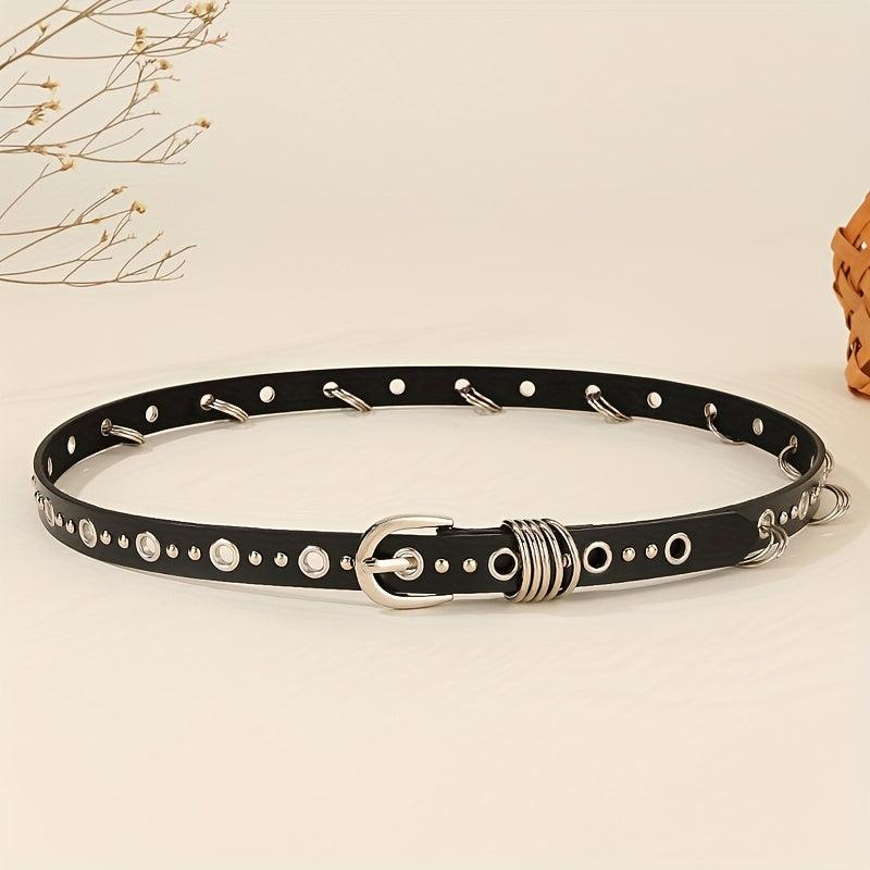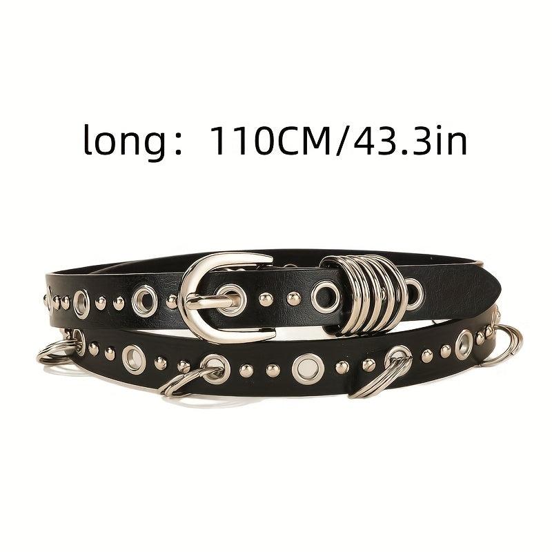 This versatile accessory is perfect for jeans, skirts, and parties. Made of durable faux leather, this belt features a decorative alloy buckle with rivet embellishments, adding a touch of punk style to your outfit.