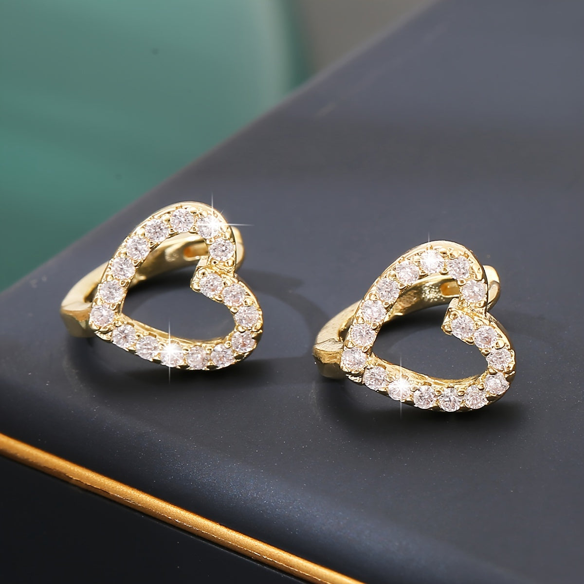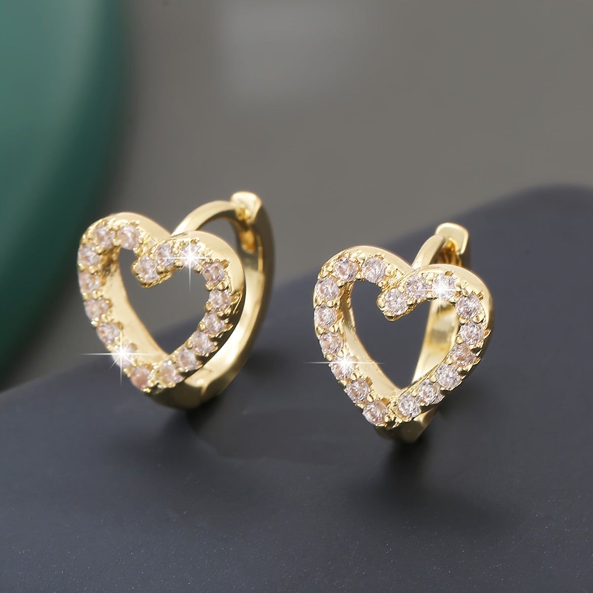 Elevate your style with these chic heart hoop earrings featuring synthetic zirconia inlay. The copper base with no plating offers a sleek look that's perfect for daily wear.