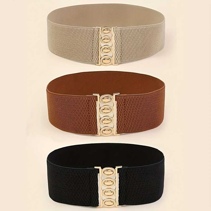 3-teiliges Set trendiger breiter Gürtel, einfarbig, elastische Hüftgürtel für Damenmode