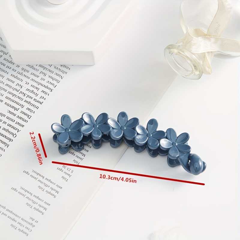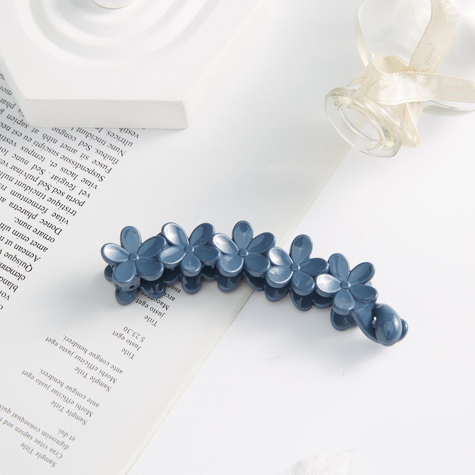 Elegant Solid Color Flower Hair Clip Plastic Curved Ponytail Holder for Women