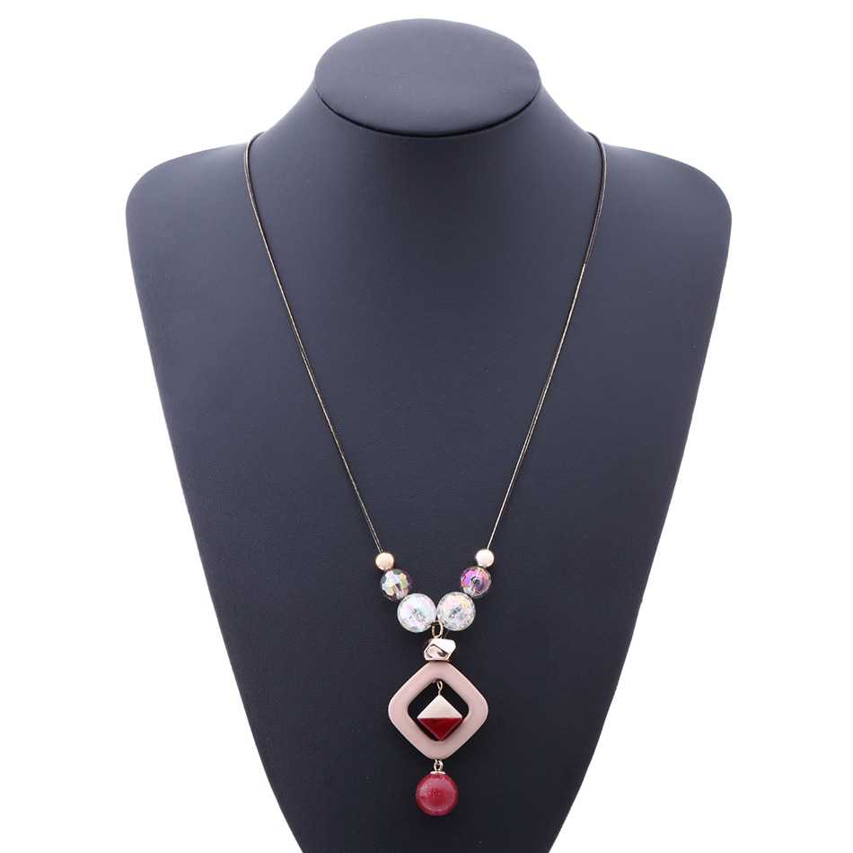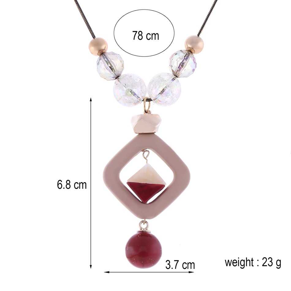 Betonen Sie Ihren Sinn für Mode mit dieser atemberaubenden Halskette aus Acrylperlen mit einem Anhänger in Rautenform mit geometrischem Muster. Die Perlen und der Anhänger sind auf einer 31 Zoll langen Schlangenkette aufgereiht. Diese ästhetische Halskette wird jedes Ihrer Outfits betonen.