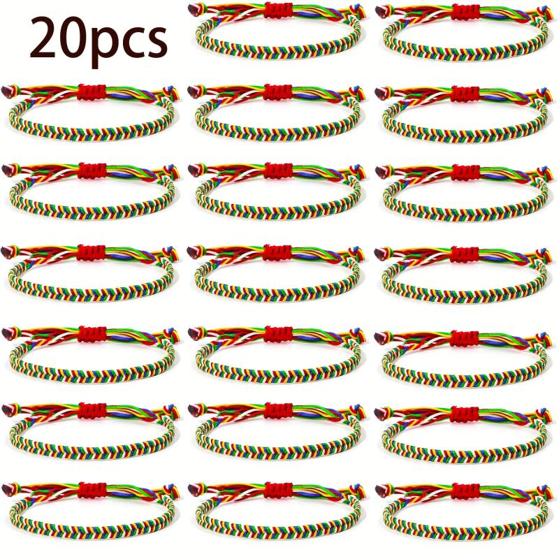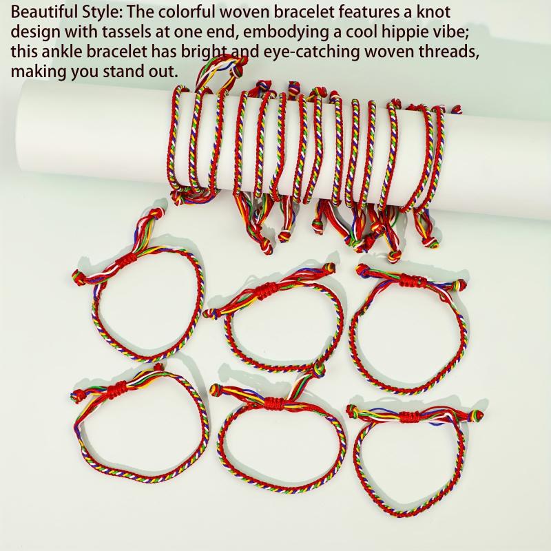 Add a pop of color to your look with these hand-woven friendship bracelets. They are elastic, adjustable, and feature vibrant rainbow colors with a cute tassel charm. Perfect for Christmas party favors or casual attire.