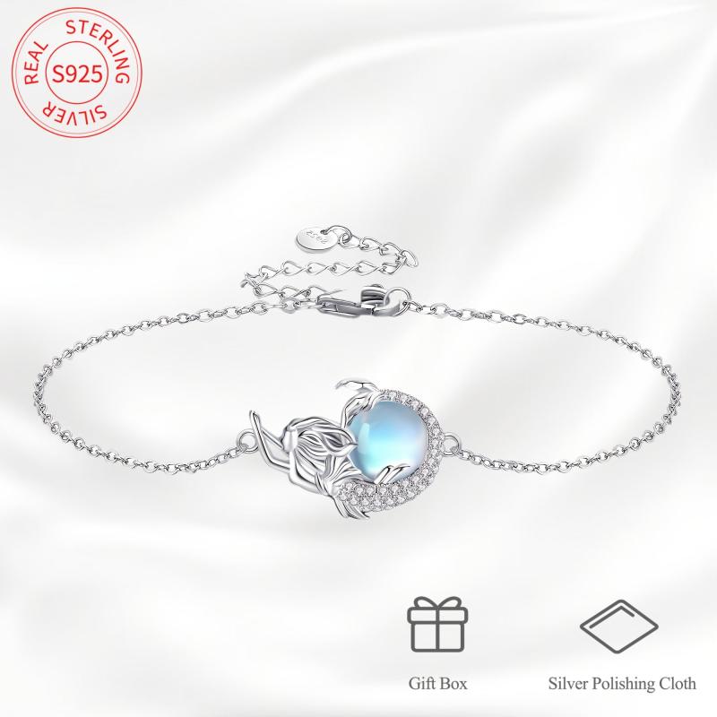 Embrace your inner mermaid with this stunning 925 silver bracelet adorned with moonstone. A perfect gift for Mother's Day or any special occasion.