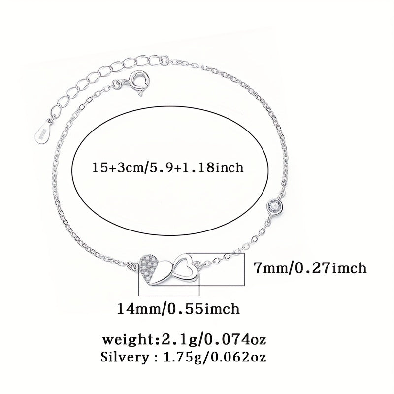 This women's bracelet features stunning Synthetic Zirconia in a beautiful heart design. Made of 925 silver, it weighs 1.75g and is perfect for casual attire or as a Valentine's Day gift for ladies.