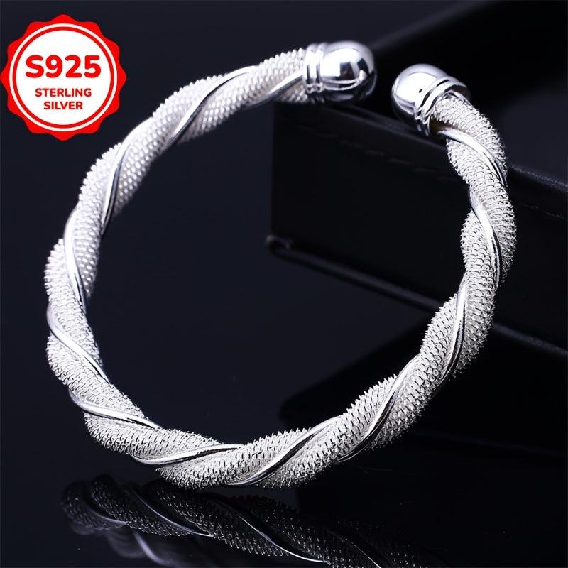 Chic and minimalistic open bracelet suitable for all seasons. Featuring a fashionable ripple twist design, this hypoallergenic piece makes a versatile gift.