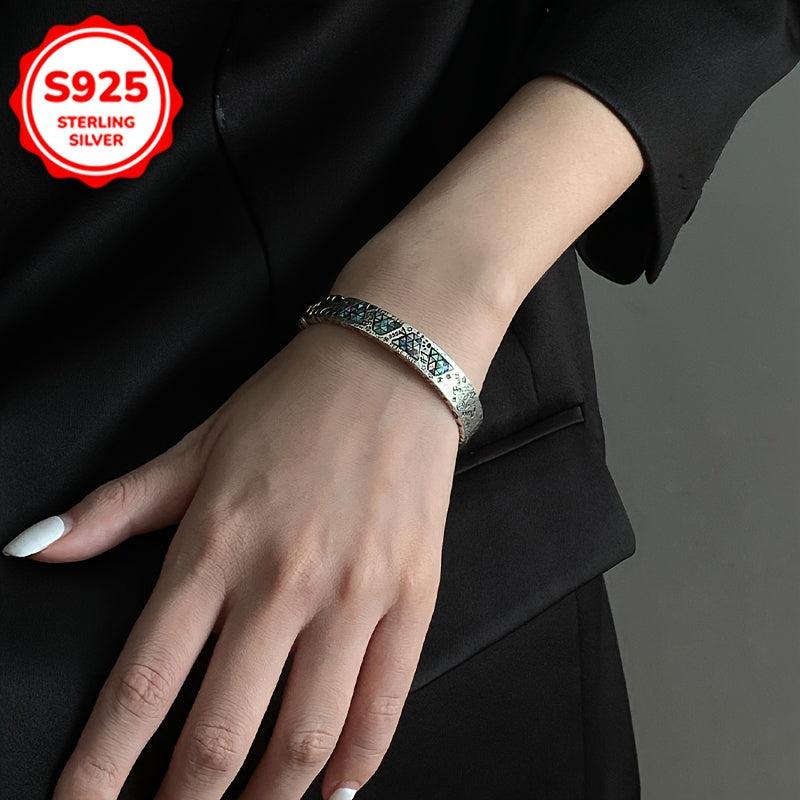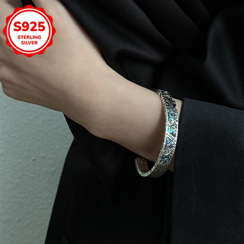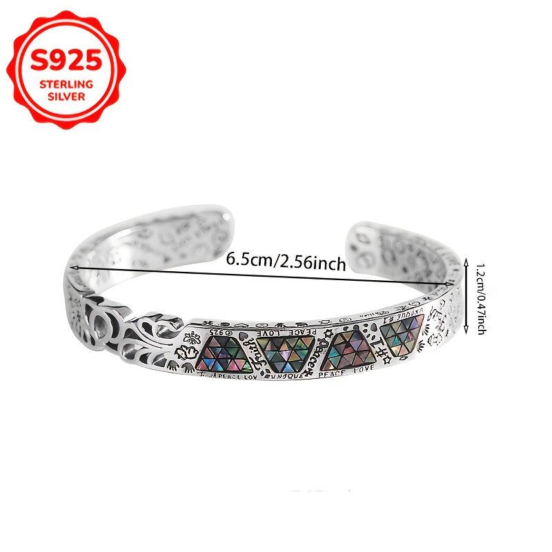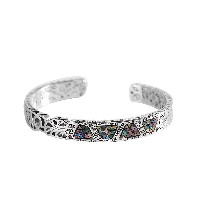 S925 Geometric Graffiti Totem Colorful Shell Open Bangle