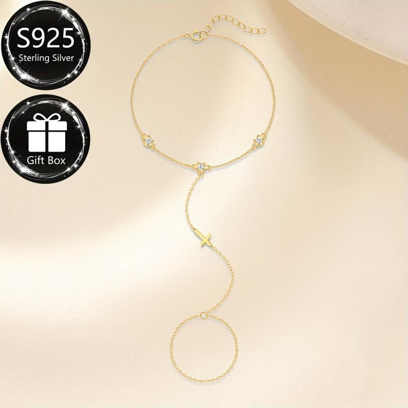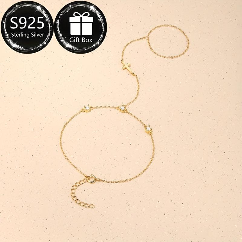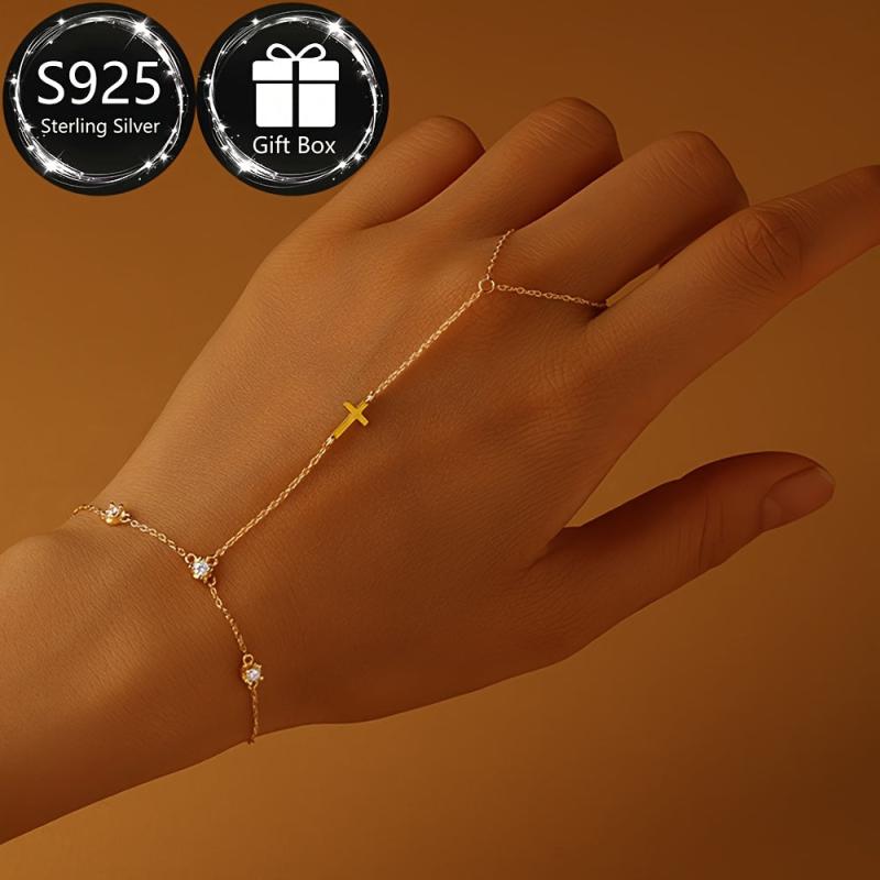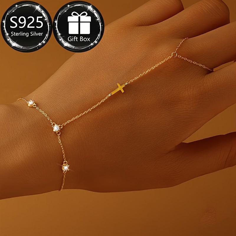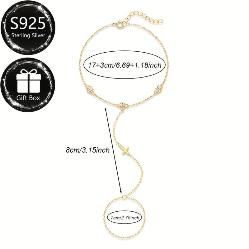 This S925 sterling silver bracelet features a cross inlaid with synthetic zirconia. Waterproof and hypoallergenic, it is a non-fading piece suitable for daily wear.