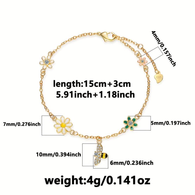 This charming bracelet features small daisies and honey flowers for a sweet and elegant look. Perfect for nature lovers and those who appreciate delicate beauty.