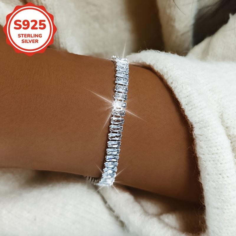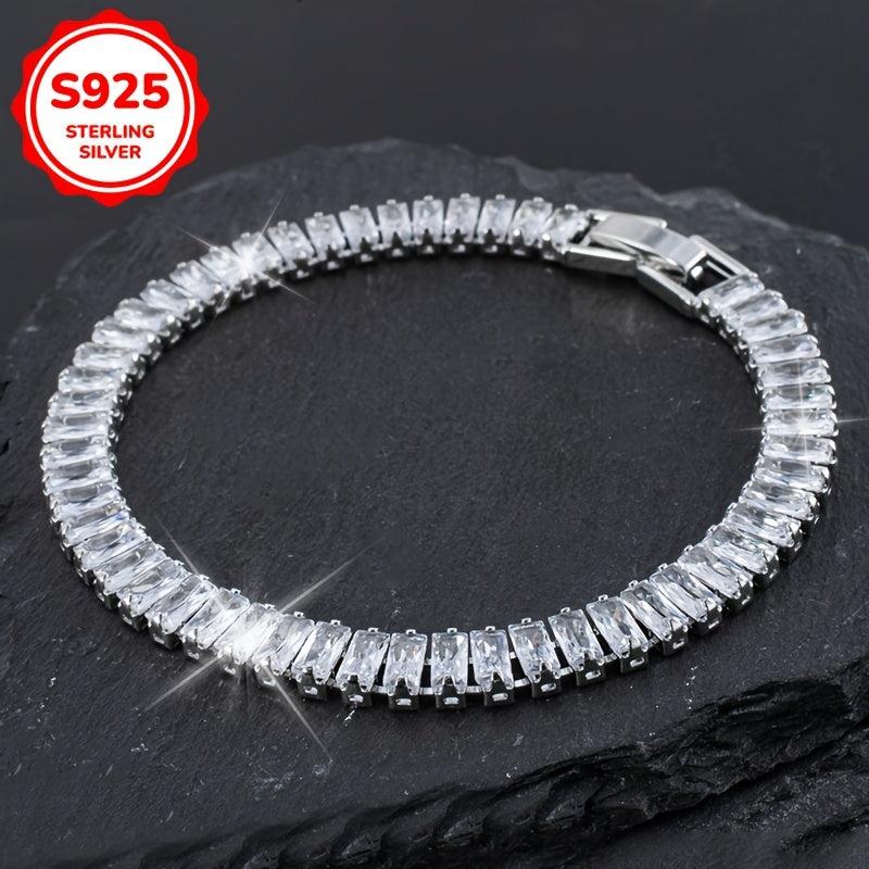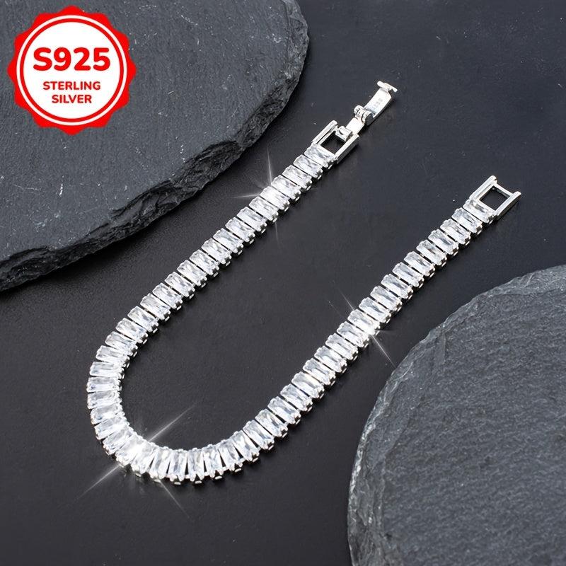 Elevate your style with this dazzling square synthetic Zirconia bracelet set. Crafted from 925 silvery material, this anti-allergic bracelet is perfect for daily wear.
