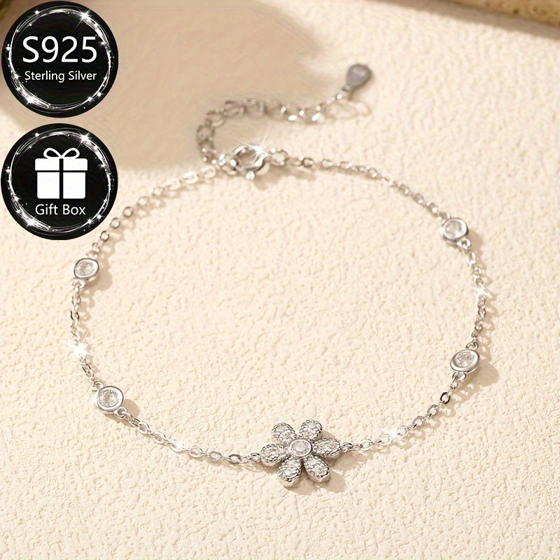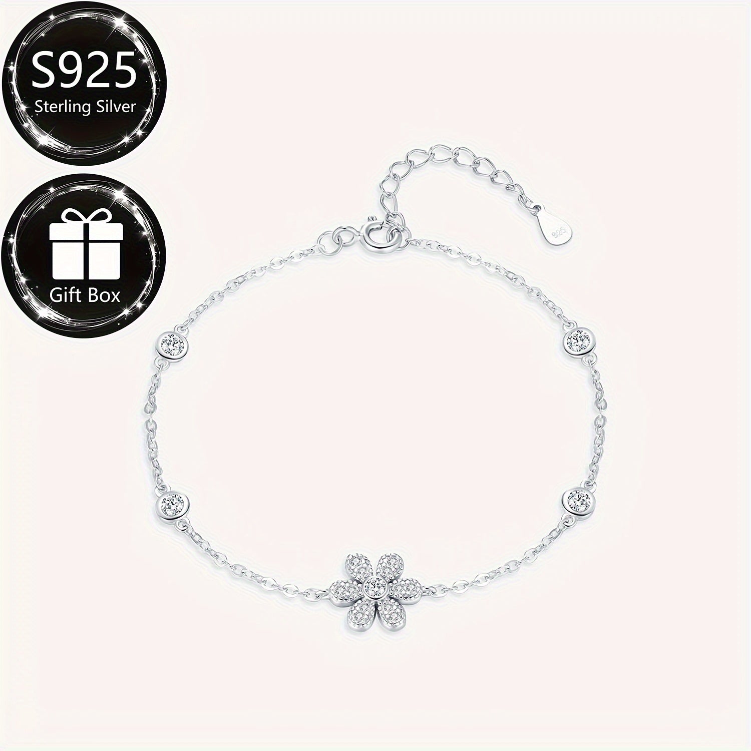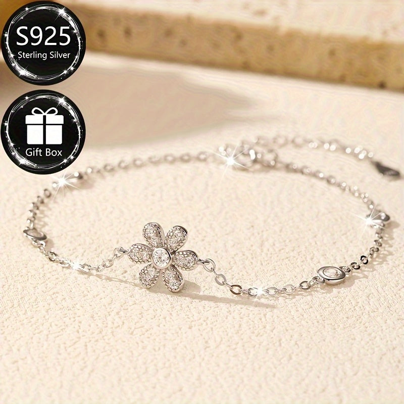 This stunning S925 sterling silver bracelet features a bright and shining flower design with cubic zirconia stones. Perfect for daily wear during your commute.