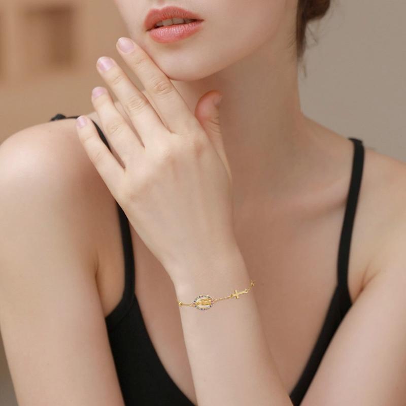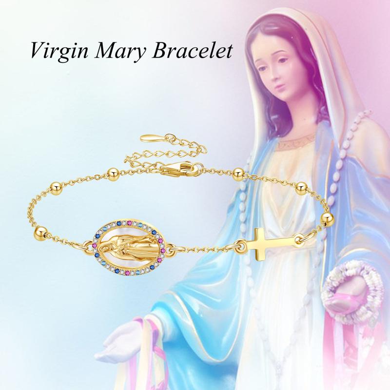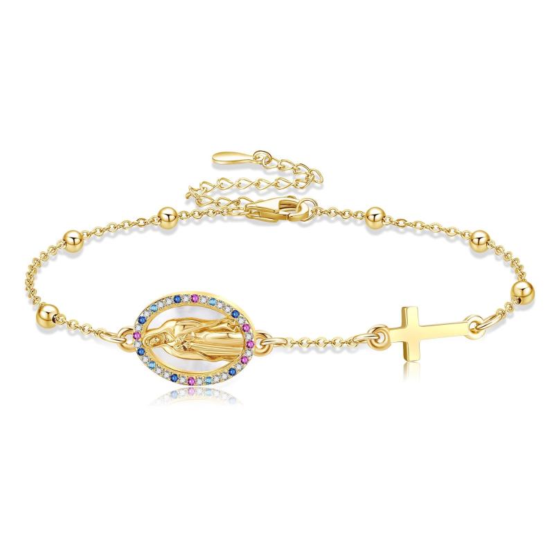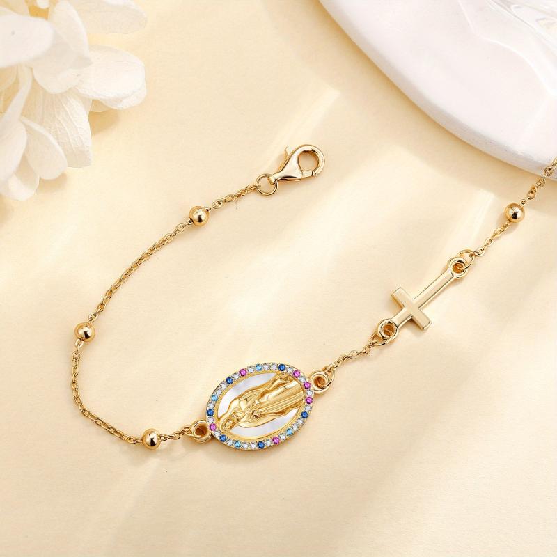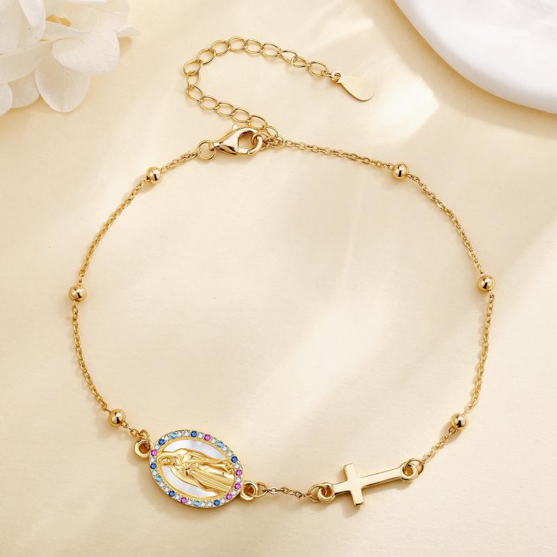 This stunning bracelet features a Virgin Mary and cross pendant on a sterling silver rosary bead chain. Perfect for those who cherish their faith and seek a beautiful accessory.