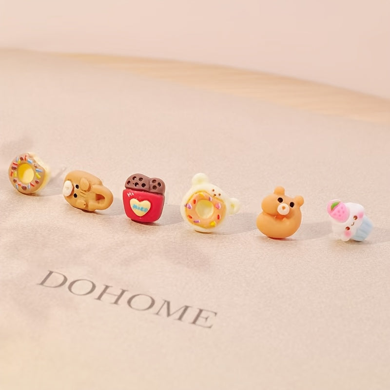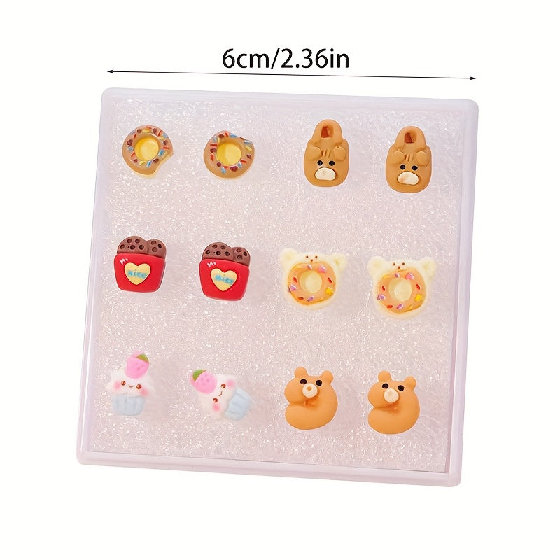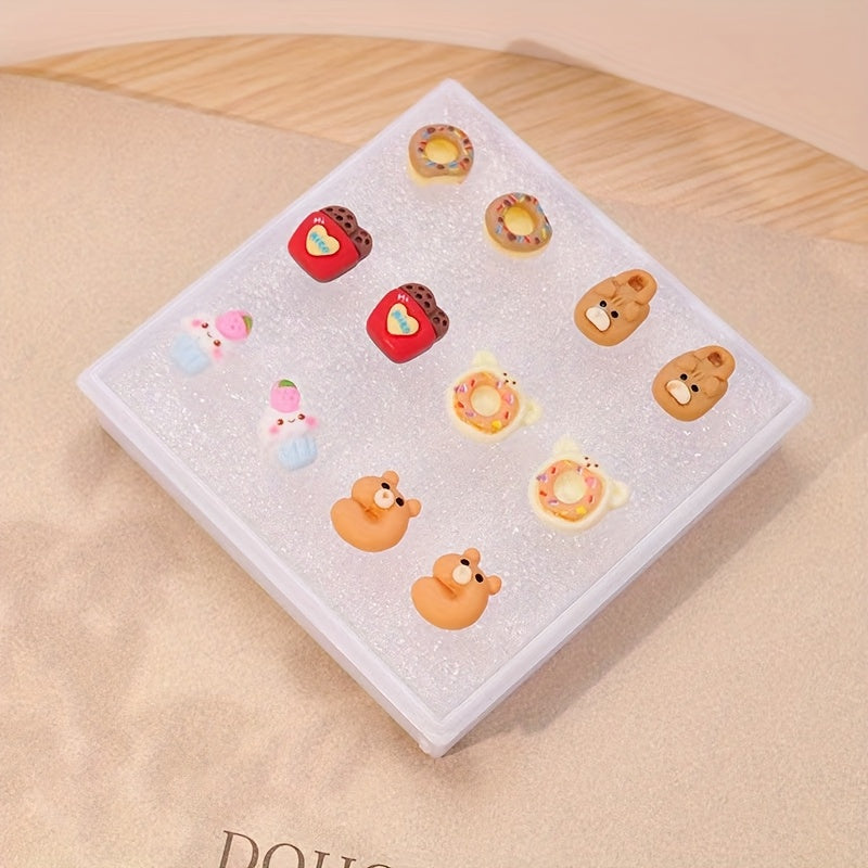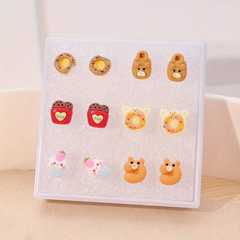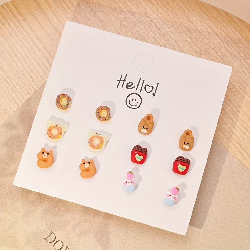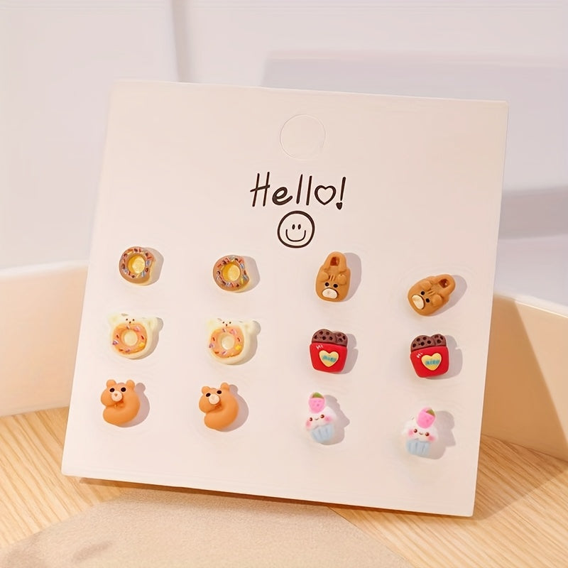 12pcs Cartoon Animal Resin Earrings Set - Cute Hypoallergenic Studs