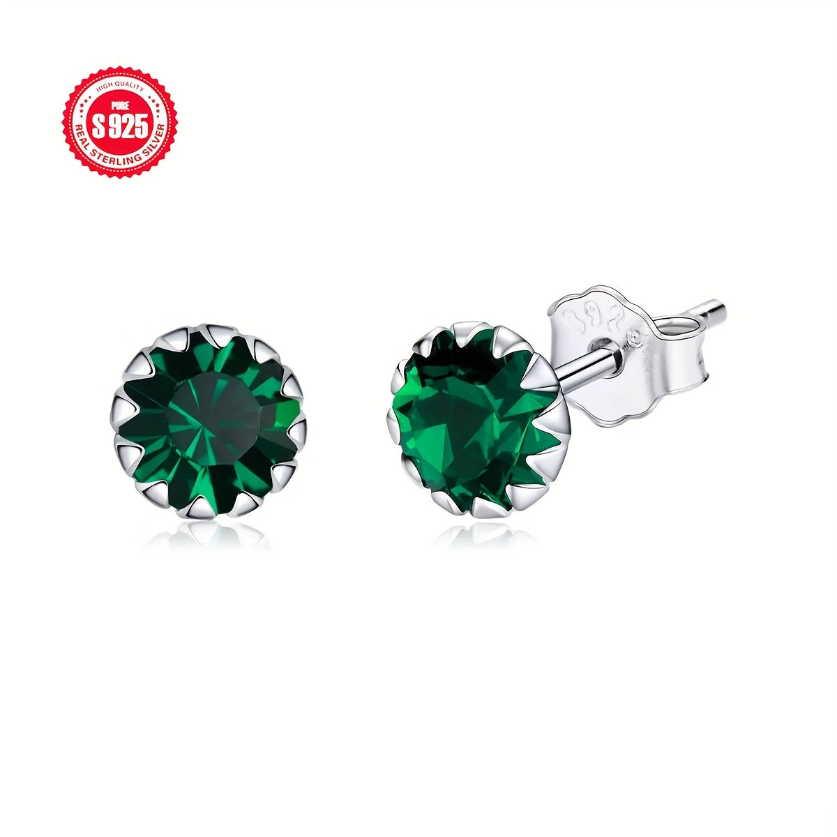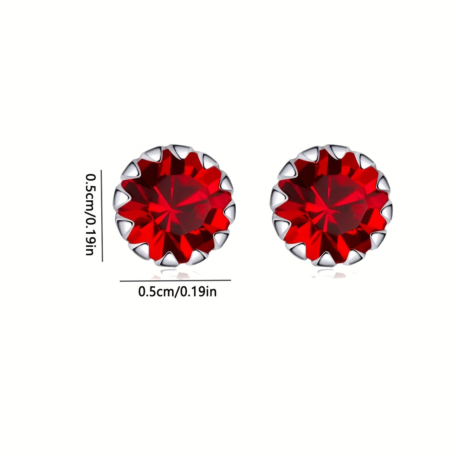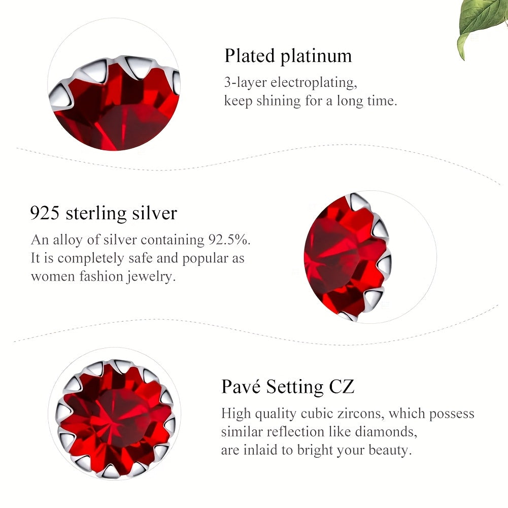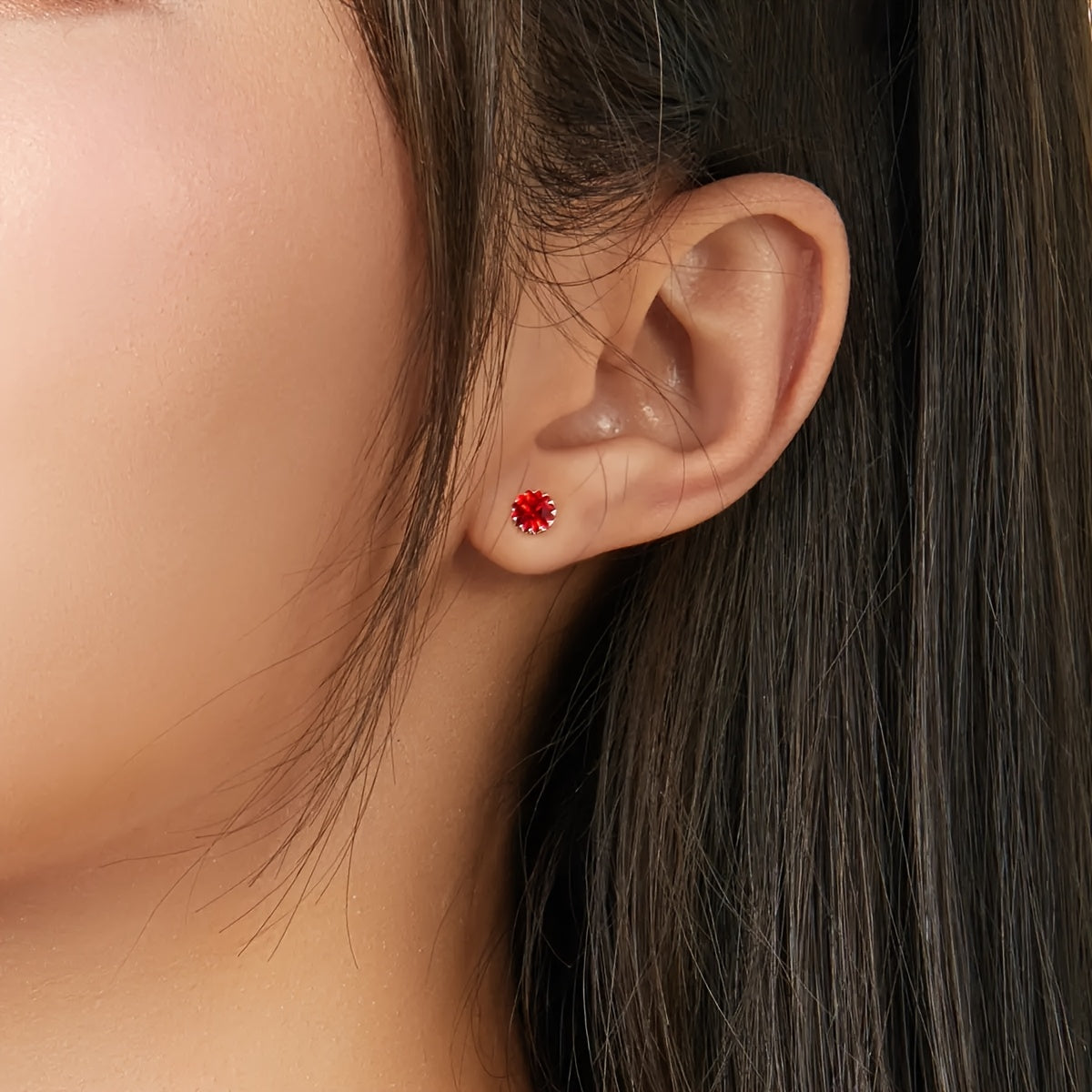 These stunning stud earrings are made of 925 sterling silver and feature synthetic zirconia stones in red and green. The brilliant cut round stones add a touch of sparkle to any outfit.