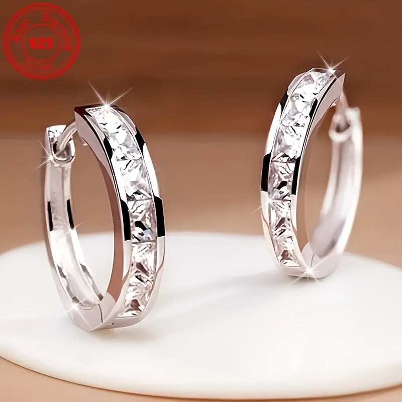 These fashionable minimalist earrings feature synthetic zirconia studs. They are hypoallergenic, lightweight, and suitable for casual attire.