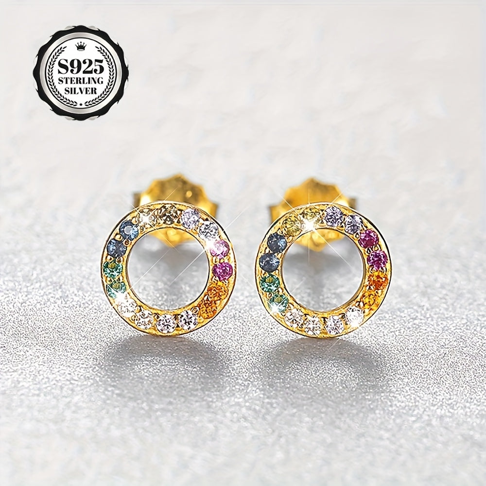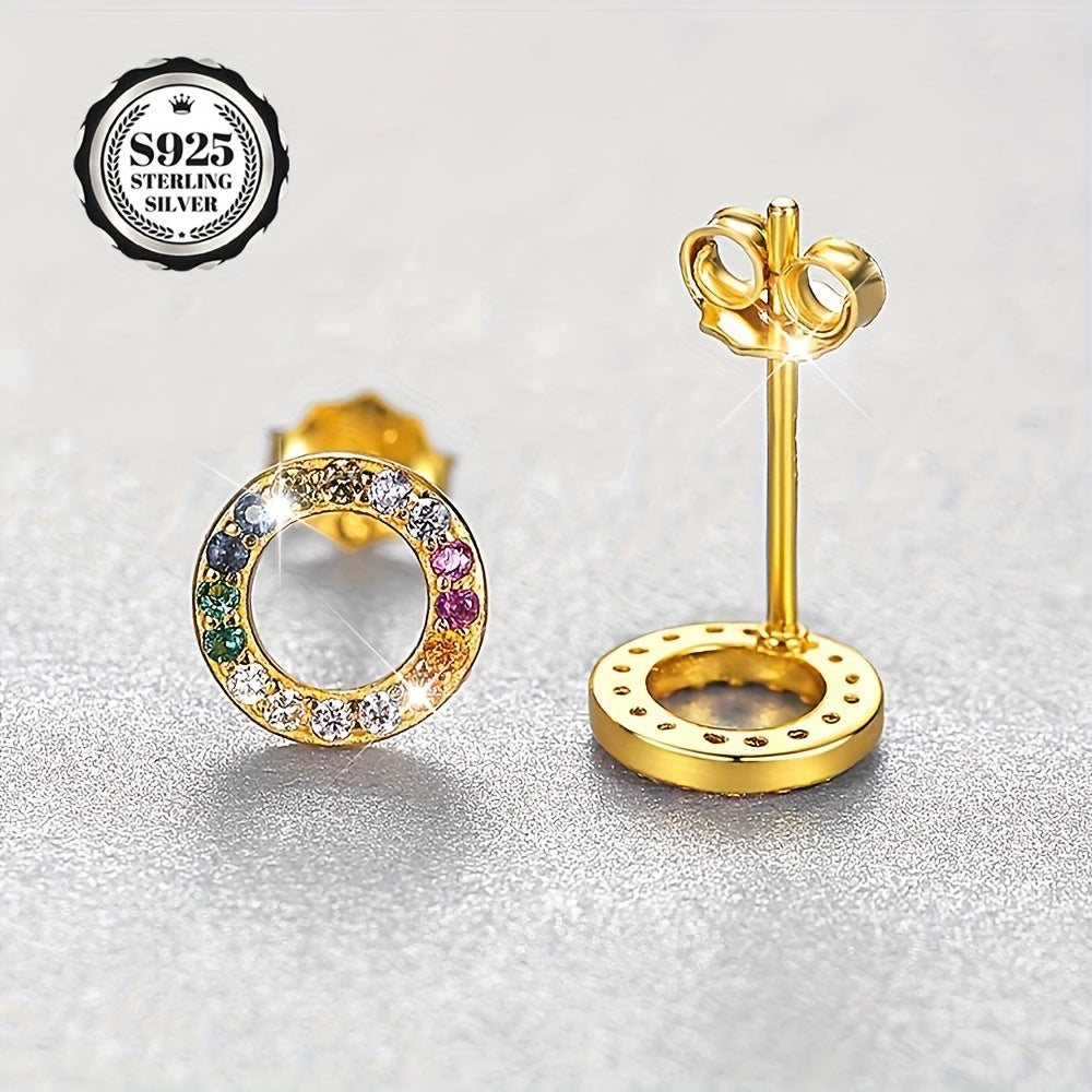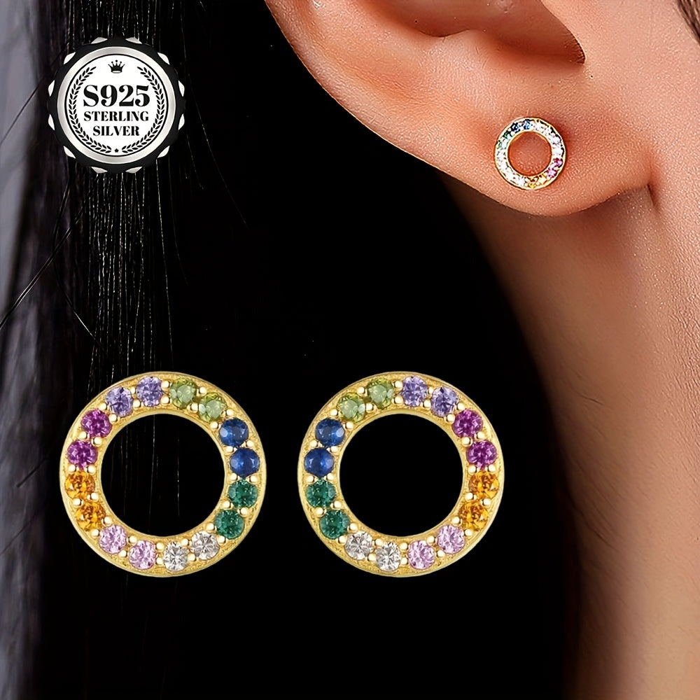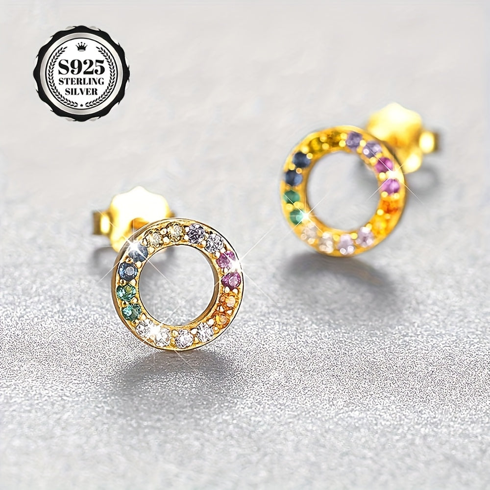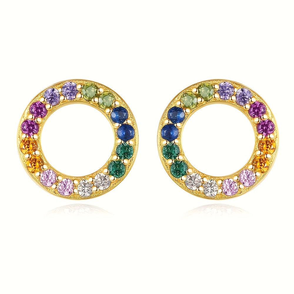 Add a pop of color to your outfit with these delicate small hoop stud earrings featuring synthetic zirconia stones. Perfect for daily wear, these earrings come in a beautiful packaging.