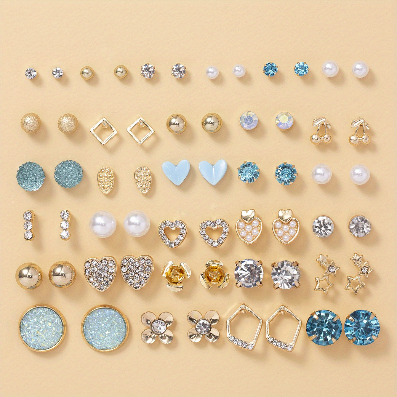 This set includes 30 pairs of assorted stud earrings featuring heart and cherry designs. Made of high-quality alloy materials, perfect for women and girls.