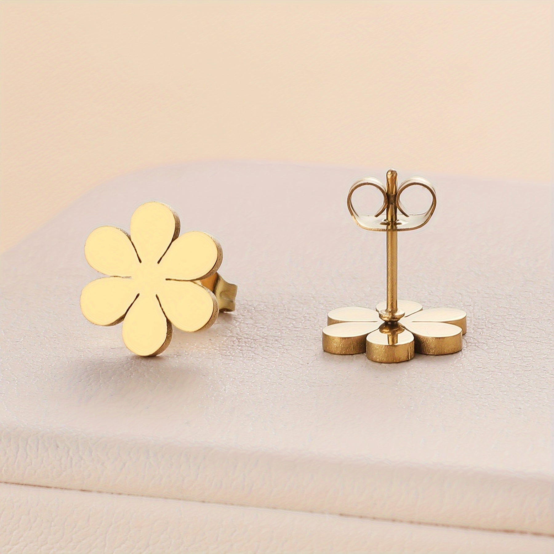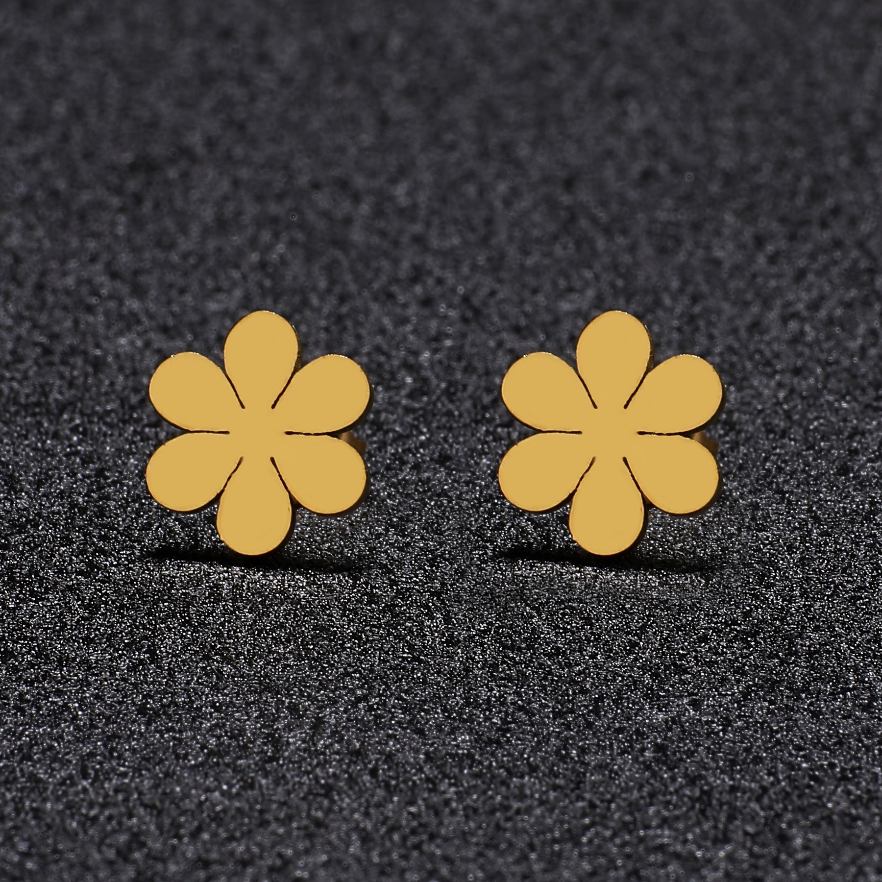 These flower stud earrings are crafted from high-quality 316L stainless steel, making them hypoallergenic and perfect for everyday wear. Available in silvery and golden tones.