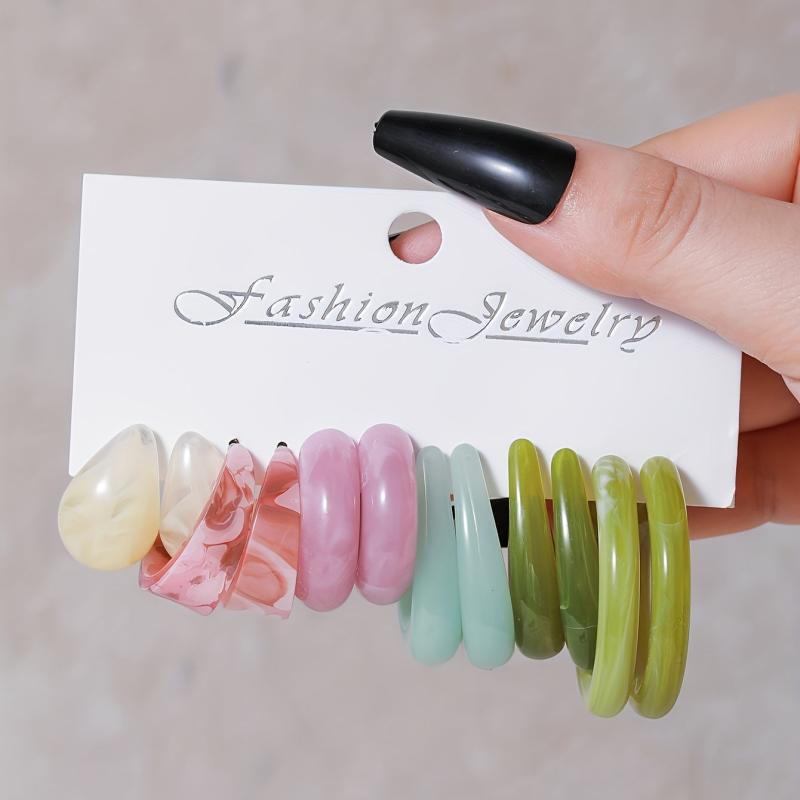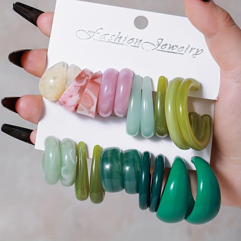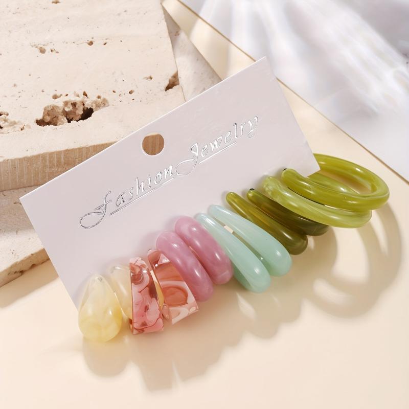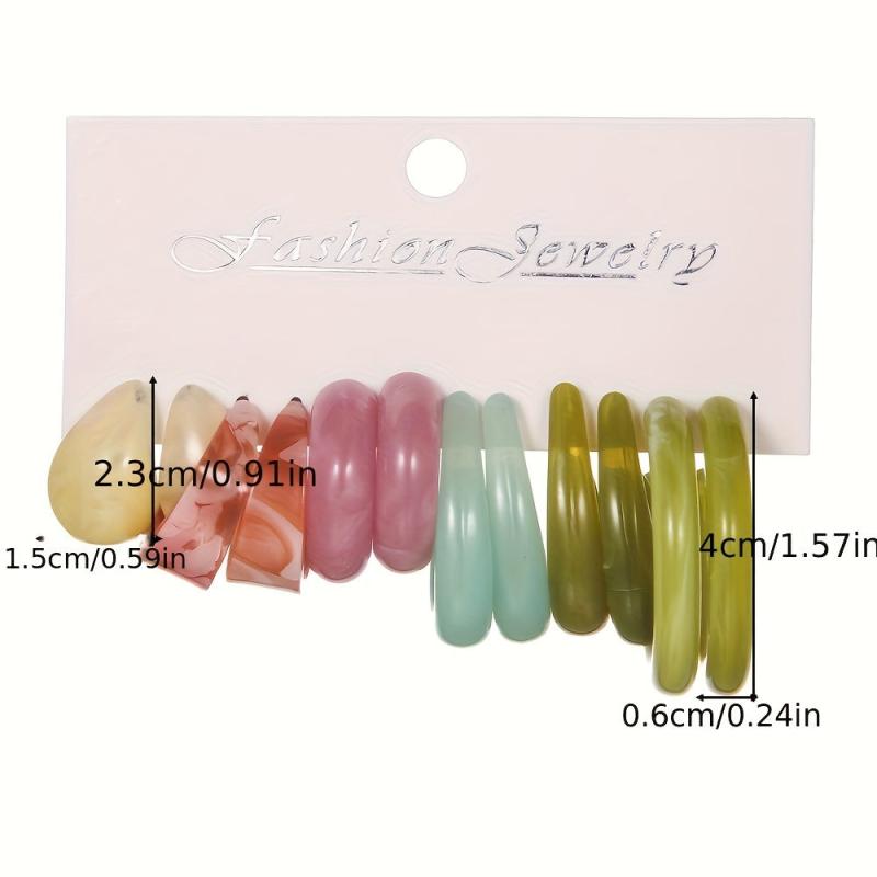 Elevate your style with this set of 6 pairs of Tribal Resin Drop Earrings. Featuring a C-shaped alloy ear needle, these earrings are perfect for daily wear or parties.