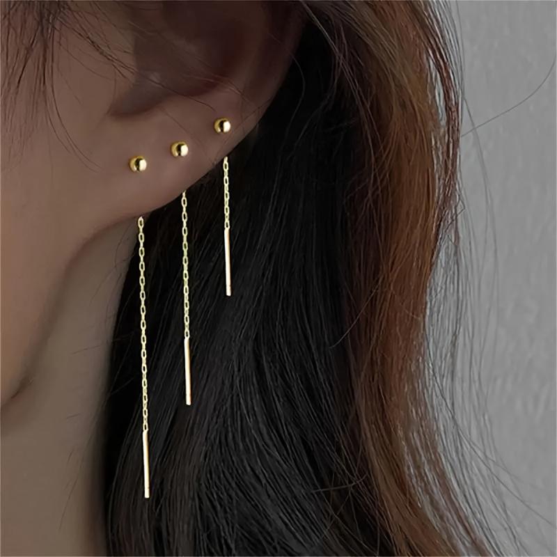 Elevate your look with this minimalist earring set featuring long tassel details. Crafted with modern craftsmanship, this set includes studs and hoops, perfect for adding a touch of elegance to your seasonal outfits.