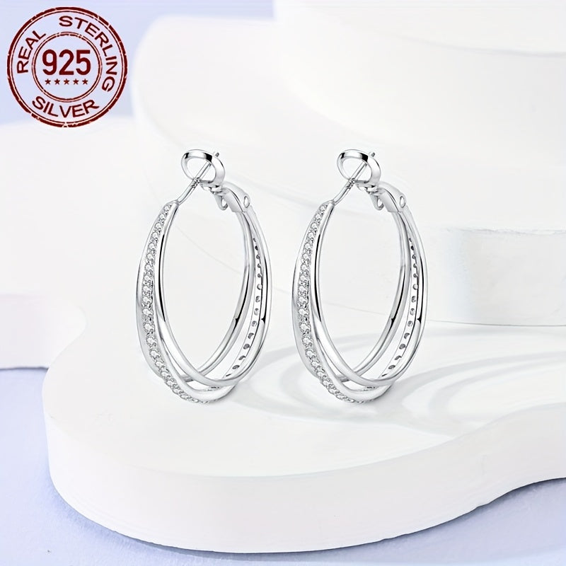 Glanz hell mit diesen atemberaubenden Triple -Hoop -Ohrringen mit Zirkonia -Akzenten. Perfekt für Partys, Musikfestivals und Valentinstag. Geeignet für alle Jahreszeiten.