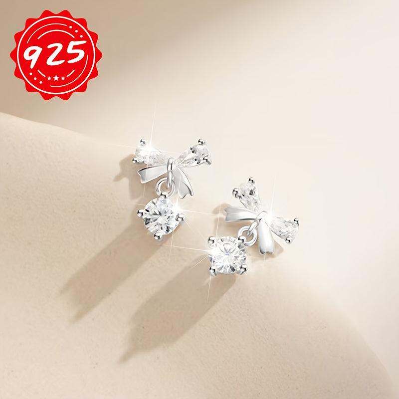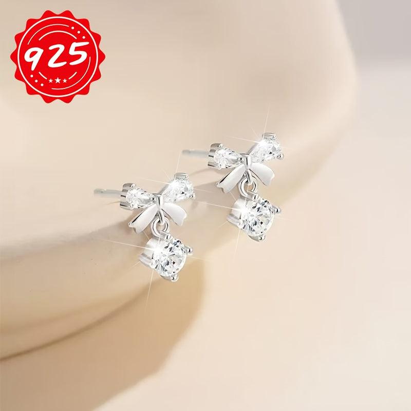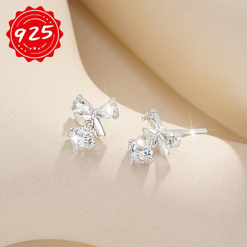925 Silver Bow Earrings - Hypoallergenic Brilliant Design
