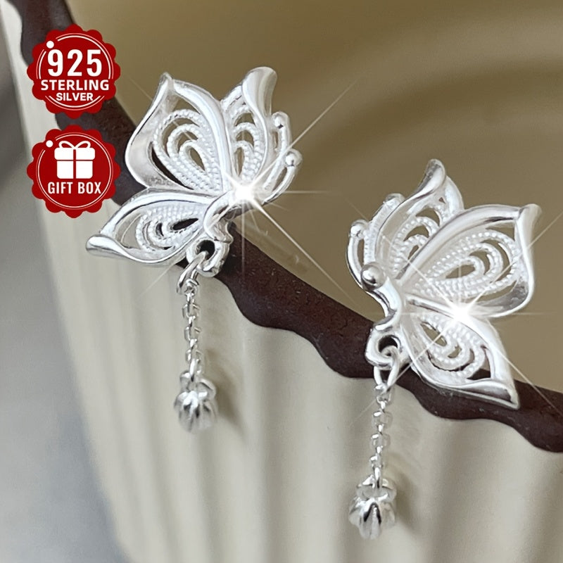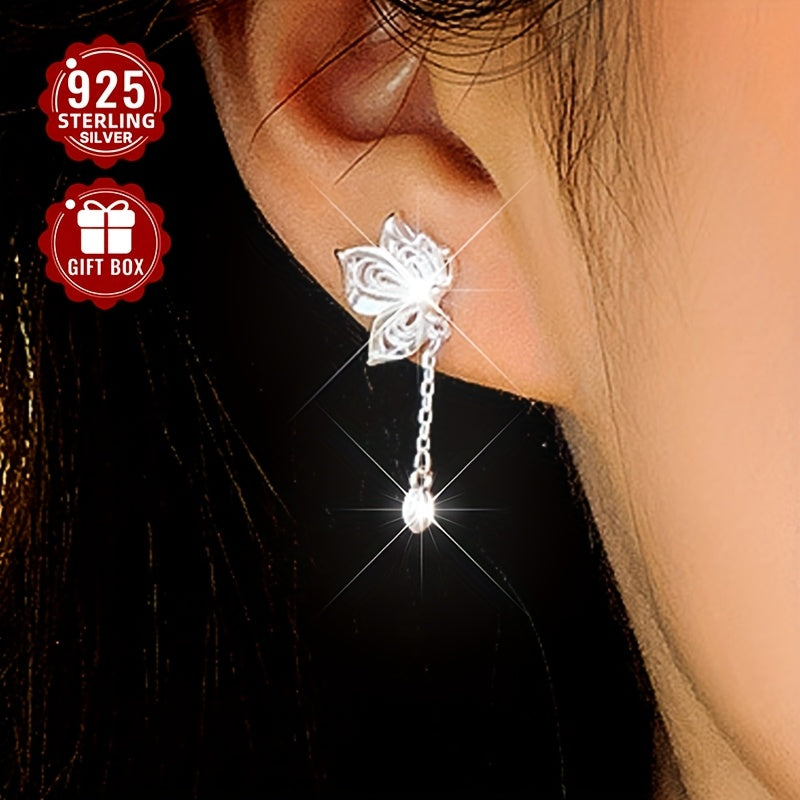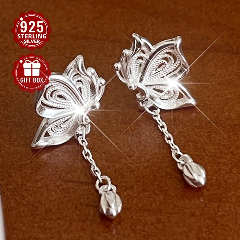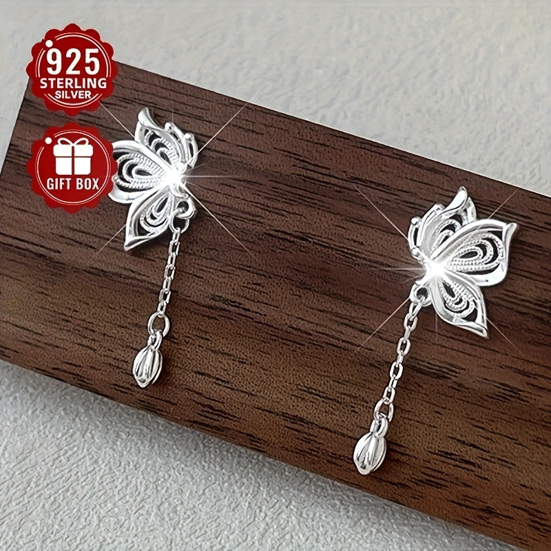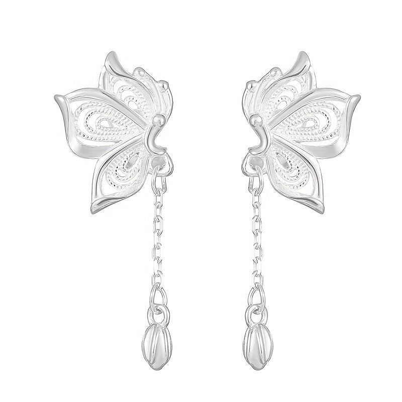 These elegant earrings feature 925 silver butterflies and sweet hollow design with fresh lotus tassel pendants. Perfect for parties and gatherings, a great gift for girlfriends.