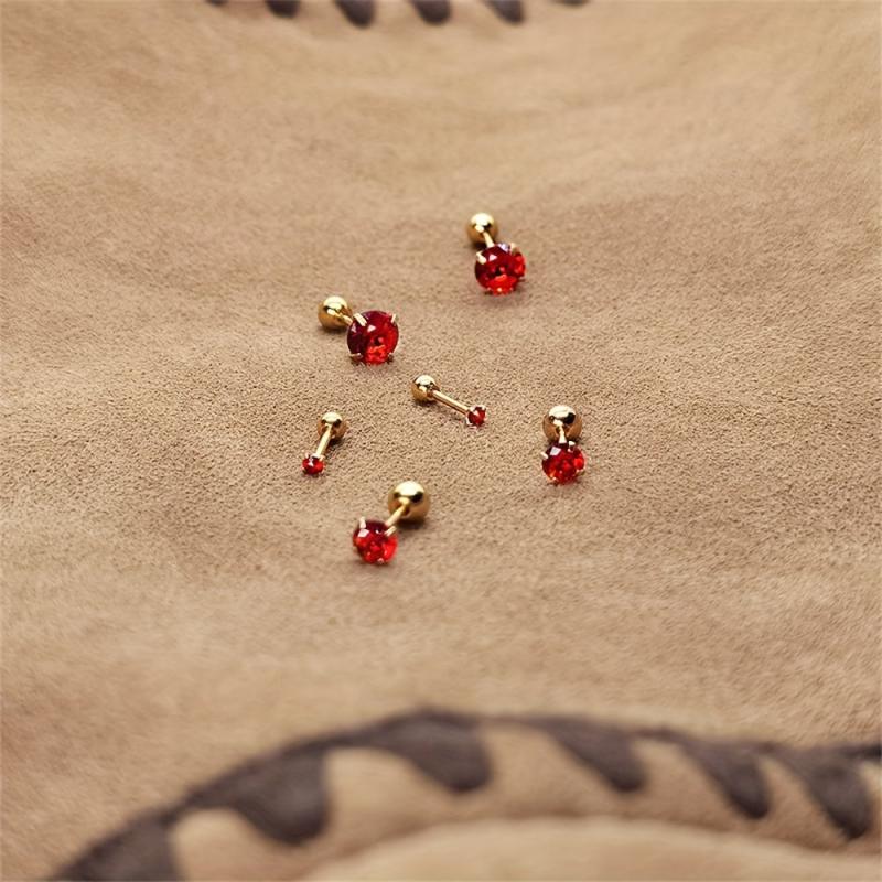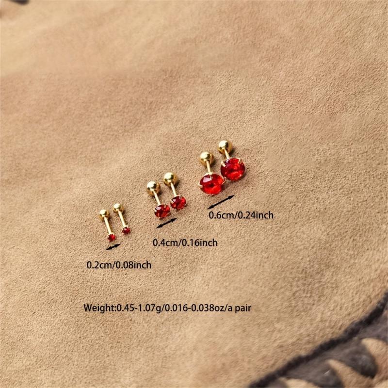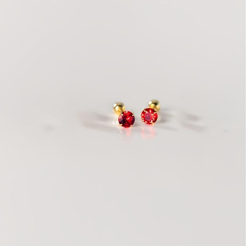 Add a pop of color to your look with these stylish 925 silver stud earrings featuring round red synthetic zirconia. Perfect for everyday wear or special occasions.