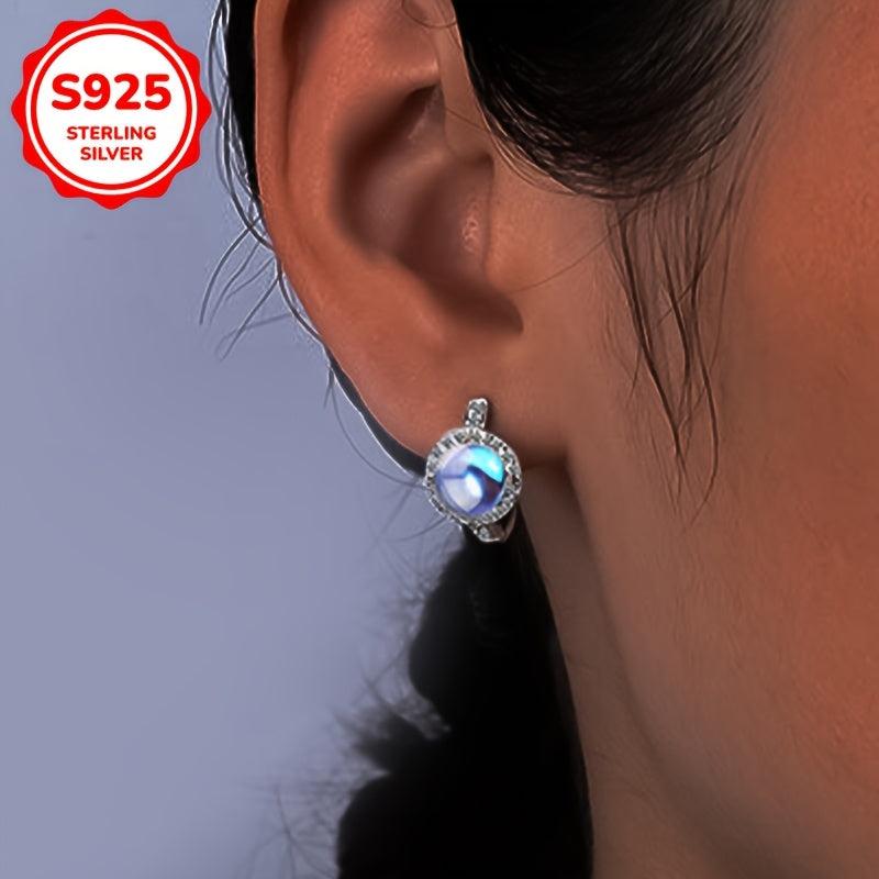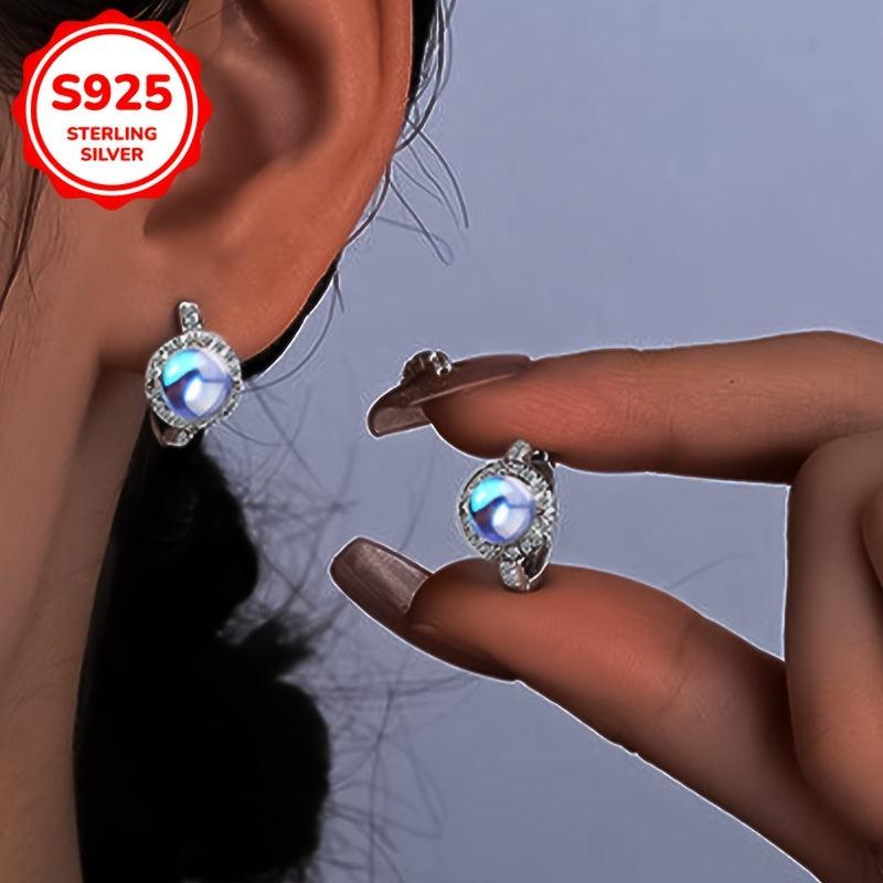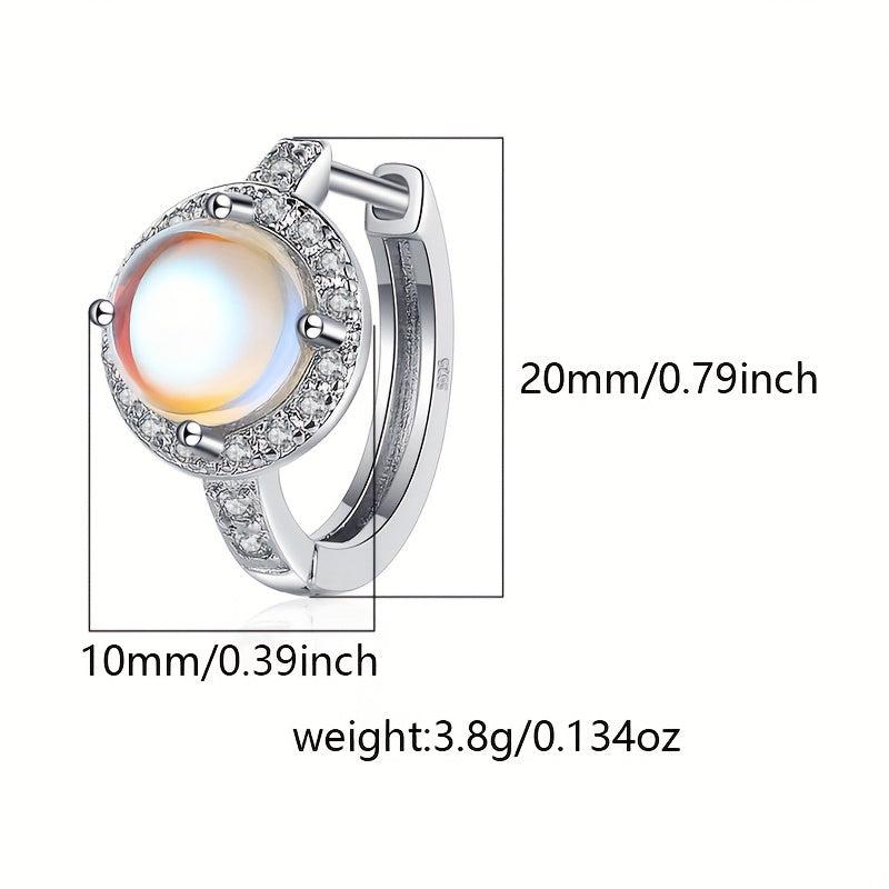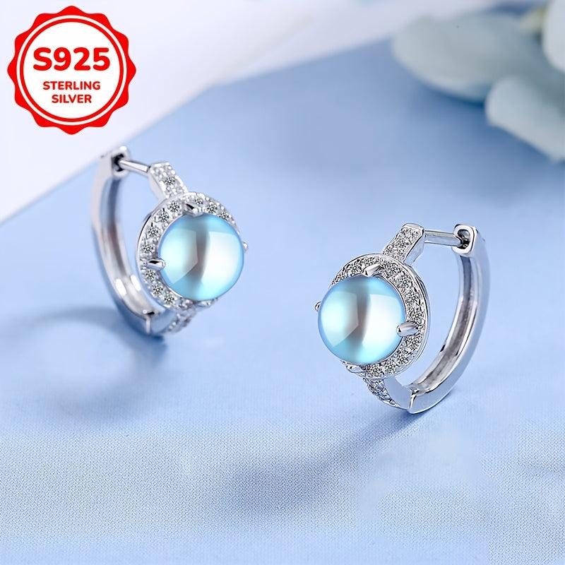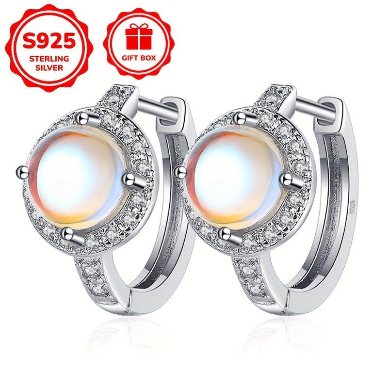 Elegant 925 sterling silver hoop earrings featuring synthetic moonstone and sparkling cubic zirconia. Perfect for daily wear, vacation, and parties.