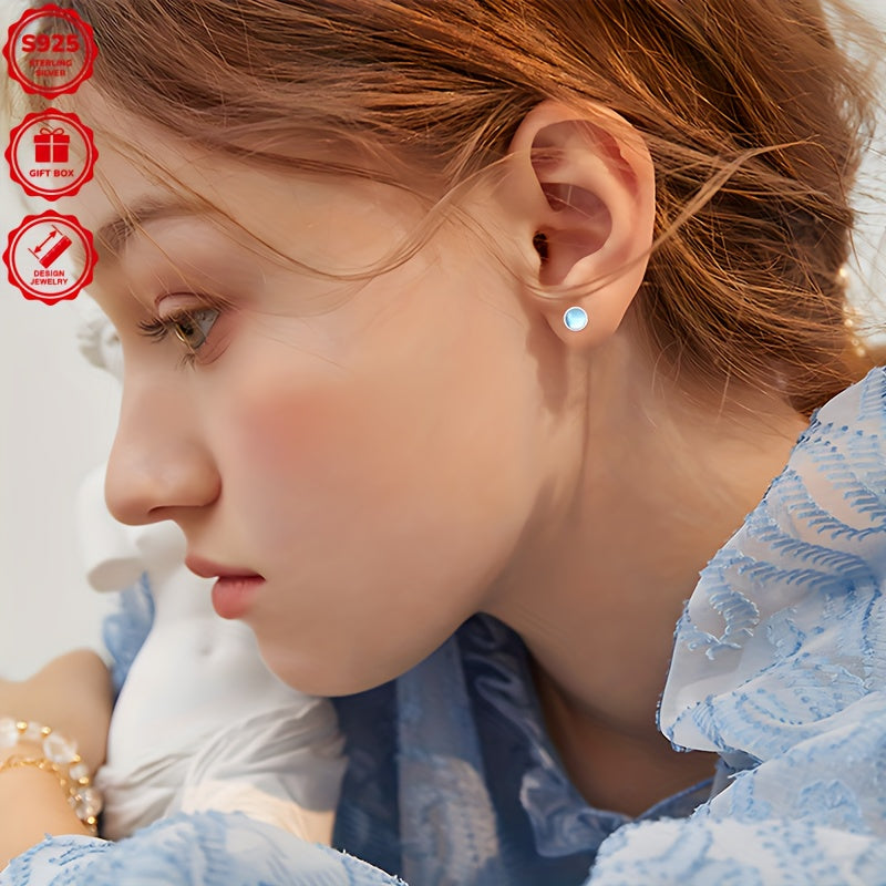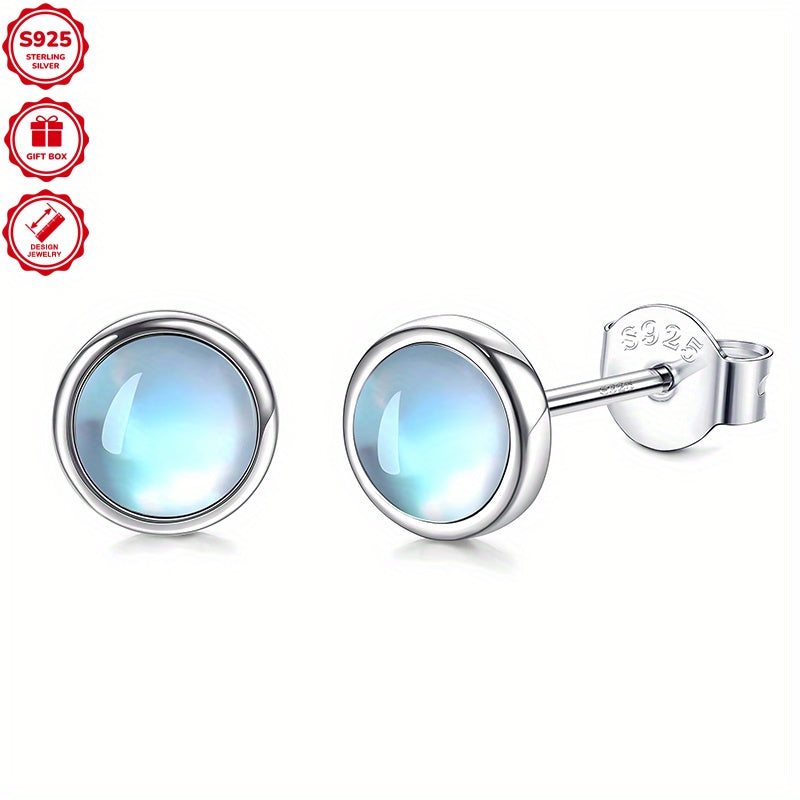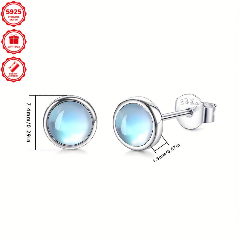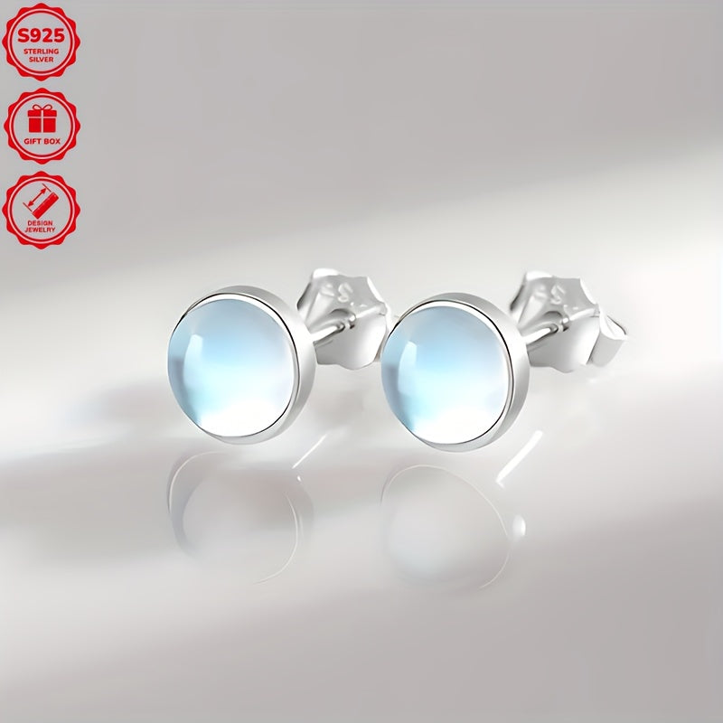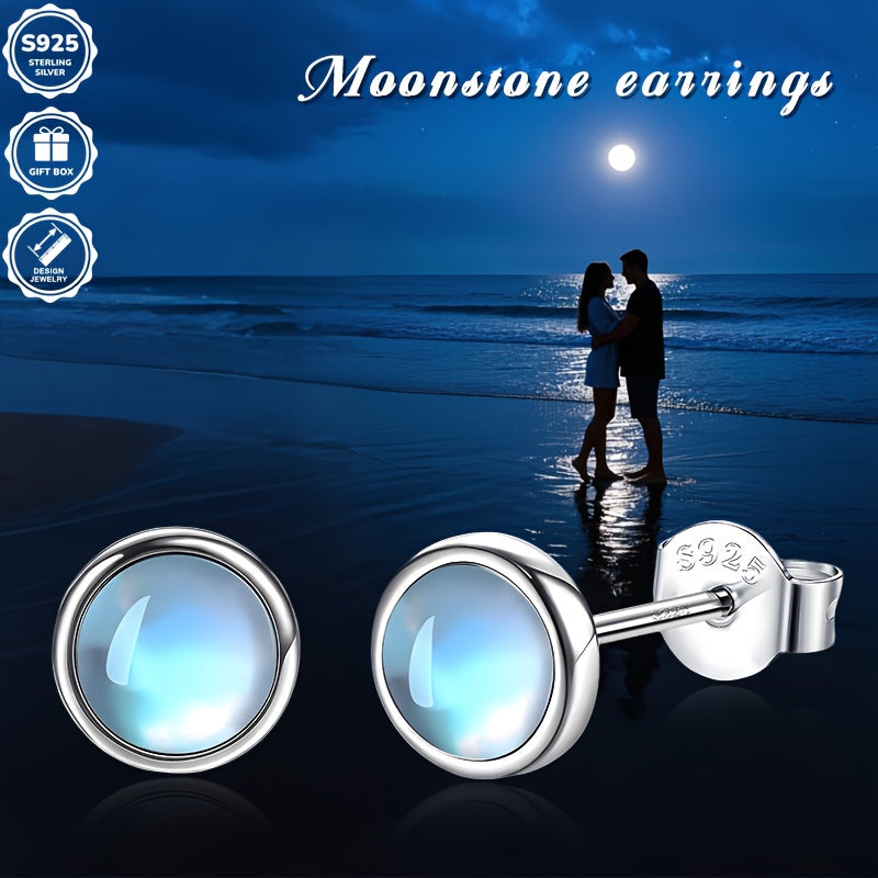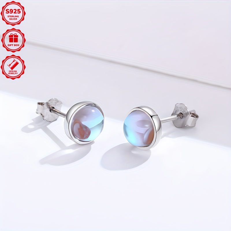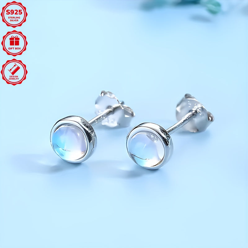 925 Silver Moonstone Stud Earrings - Sparkling Gemstone Hypoallergenic