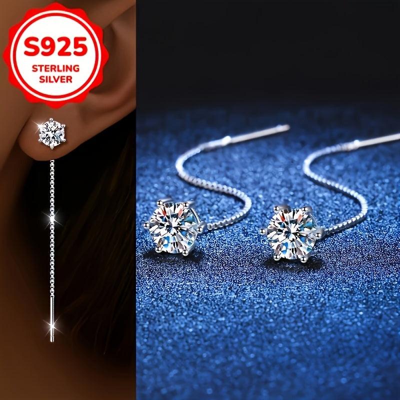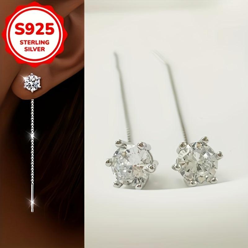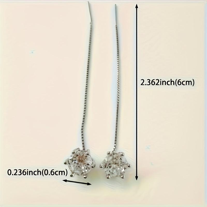 Elegant pair of 925 silver pendant earrings with sparkling synthetic zirconia, perfect for weddings and bridesmaid in a bohemian style.